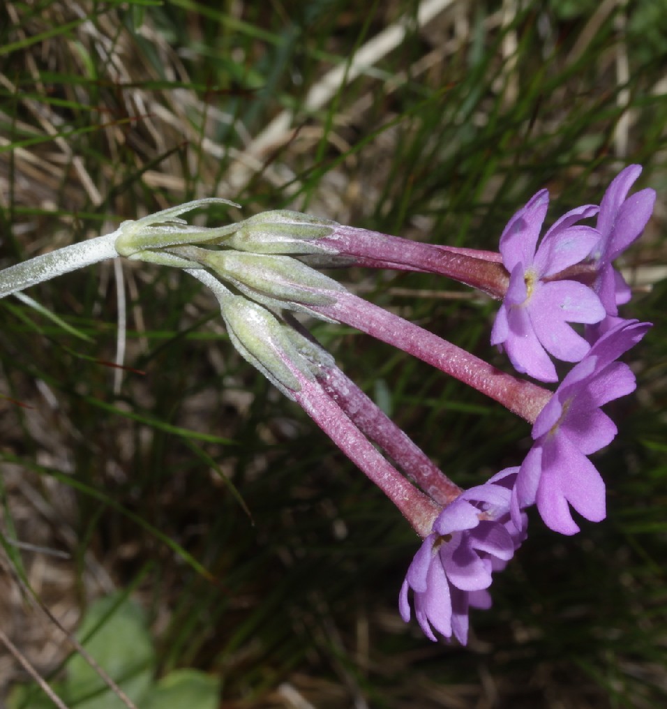 Primula - Blüten rosa oder violett, mit gelbem Schlund