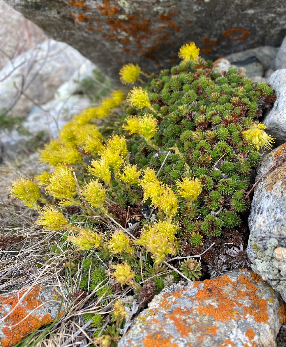 Steinbrech - Blüten zu 2 - 10, dottergelb oder orange, lockere Polster bildend, Blätter linealisch, stachelspitzig