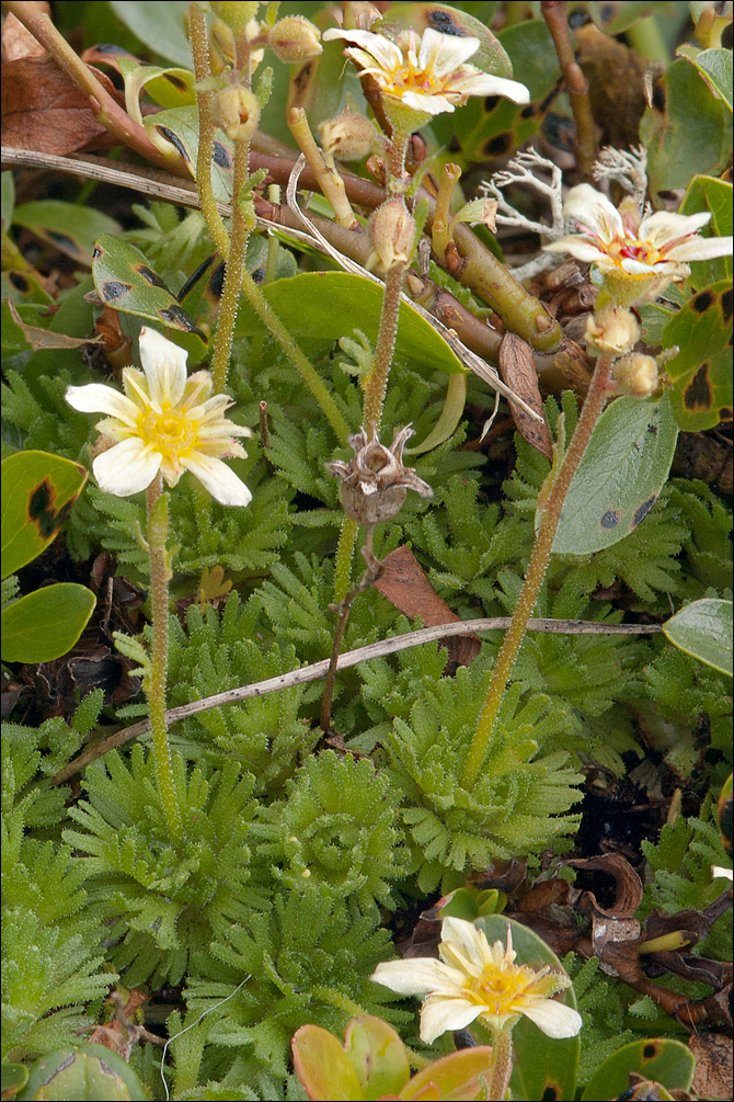 Saxifraga - Blüten rein weiß, ohne Punkte, Grundblätter weich, nicht