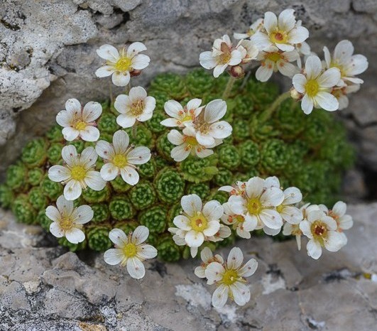 2 Endemit der Dauphine (Frankreich), Grundblätter in dichten kugeligen Rosetten, Kronblätter 4 - 5 mm lang, deckend