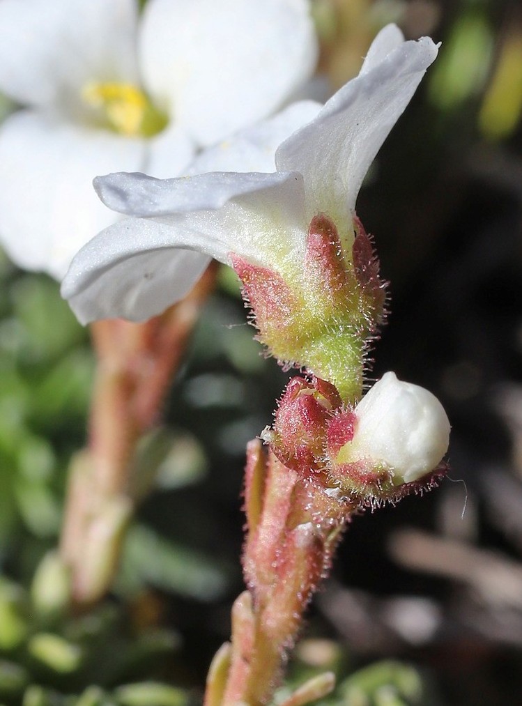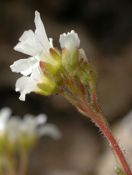 Stängel drüsig behaart, mit 2 - 6 Blüten und wenigen kleinen Blättchen