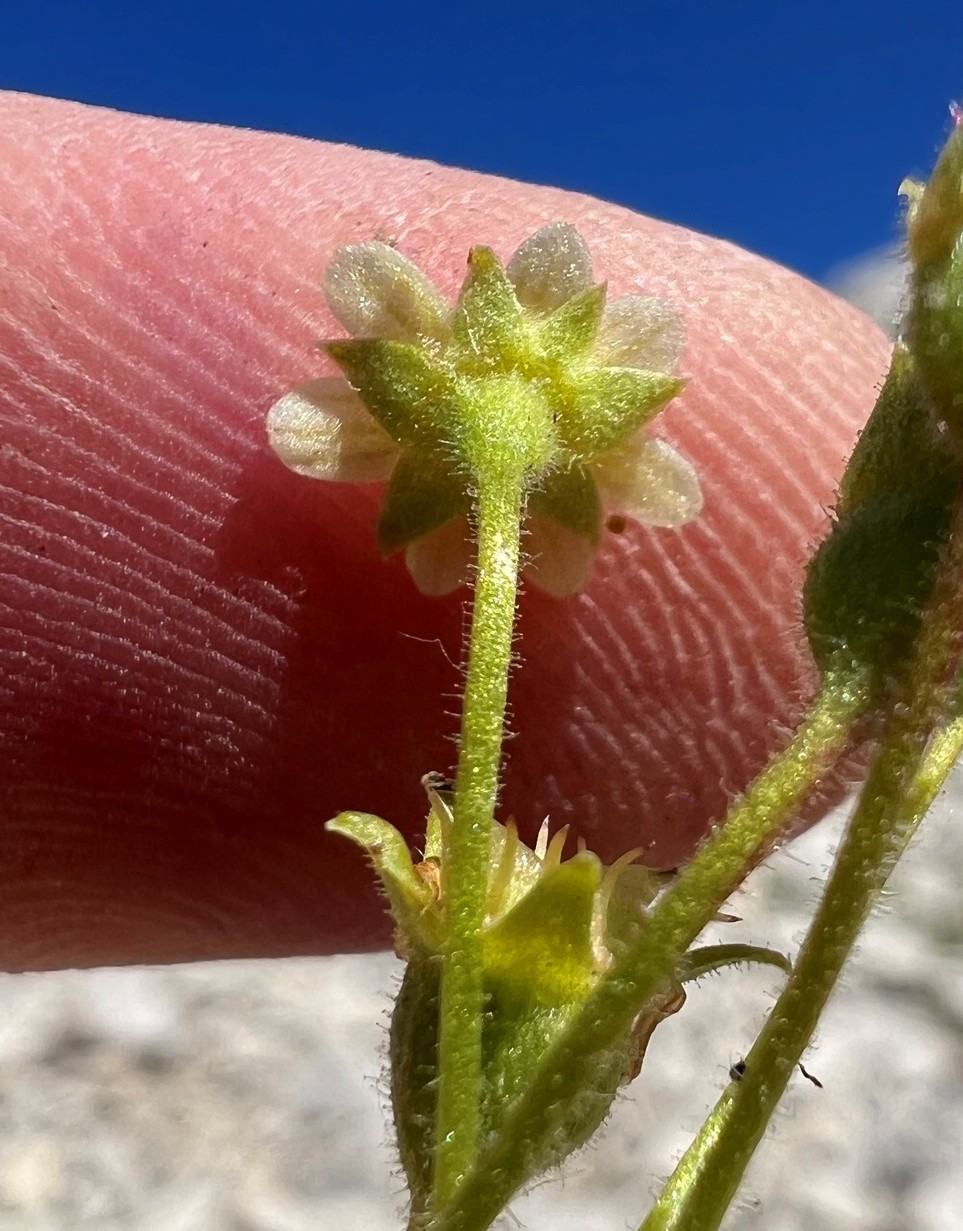 Kronblätter 2 - 3 mm lang, blassgrün oder zitronengelb, ca. so lang und schmaler als die Kelchblätter, Staubblätter ca. so lang wie die Kronblätter, Antheren gelb, Fruchtknoten unterständig
