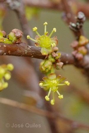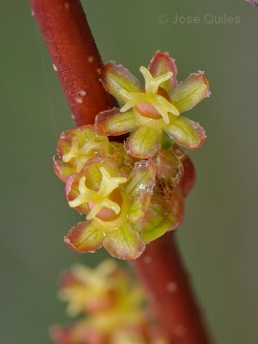 Spanien Blüten getrenntgeschlechtlich, meist mit 6 grünlichen Perigonblättern, Kronblätter fehlend > Flueggea (Wegdorn)