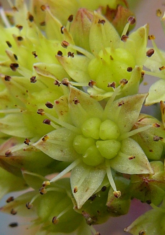 Blätter fleischig Blüten mit 5 freien Fruchtblättern, 5 Griffel > Crassulaceae (Dickblattgewächse)