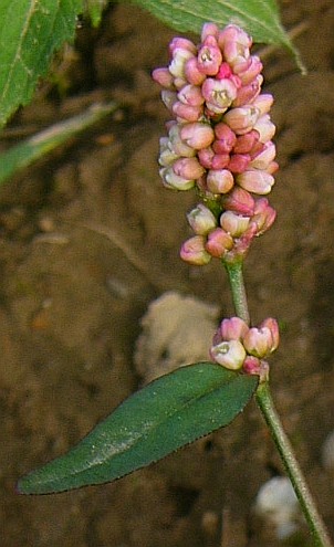 Köpfchen rosa Blätter lanzettlich- eiförmig, Stängel mit Ochrea > Knöterich (Persicaria)