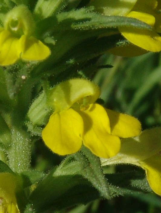 Schlund offen Pflanze drüsig, Blüten gelb, Unterlippe mit Leisten > Parentucellia viscosa
