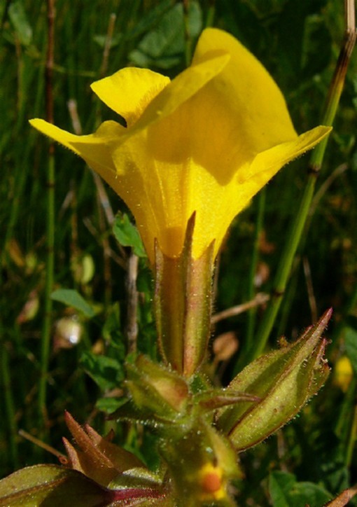 Kelch 5- rippig geflügelt Blüten dottergelb, mit roten Punkten > Gauklerblume (Erythranthe)