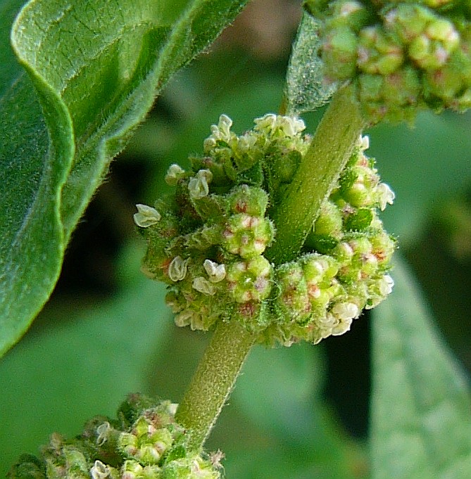 Grund an verzweigt, niederliegend oder aufrecht Blätter ganzrandig oder vorne ausgerandet, oft kraus Vorblätter spitz, oft länger als das Perigon > Fuchsschwanz (Amaranthus)