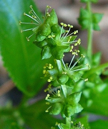 Brennhaare, Blüten zweihäusig getrenntgeschlechtlich, 3 - 4 Perigonblätter Männchen mit 9 - 12 Staubblättern, Weibchen mit Fruchtknoten und 2 Griffeln > Bingelkraut (Mercurialis)