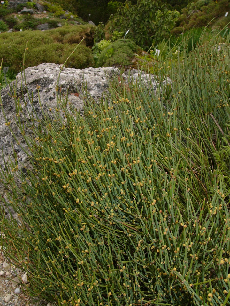 20 - 300 cm hoher Strauch oder Halbstrauch mit schachtelhalmähnlichem Habitus Blätter zu kleinen Schuppen reduziert, Samen nicht bedeckt > Ephedraceae (Meerträubelgewächse)