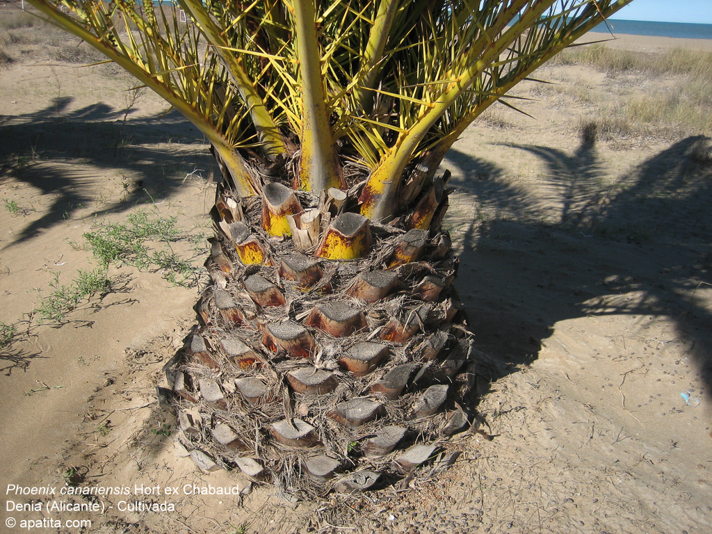 Die Blätter werden regelmäßig abgeworfen, wobei am Stamm die Blattnarben als deutliche Marken erhalten bleiben
