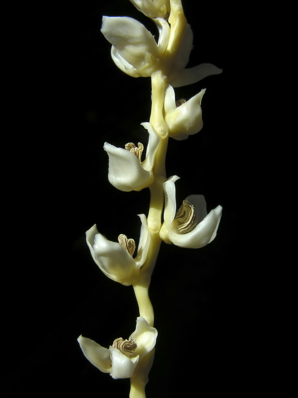 Weibliche Blütenstände bestehen aus umgeformten Blättern, die in einem Kranz an der Spitze der Pflanze abwechselnd mit den Laubblättern gebildet werden