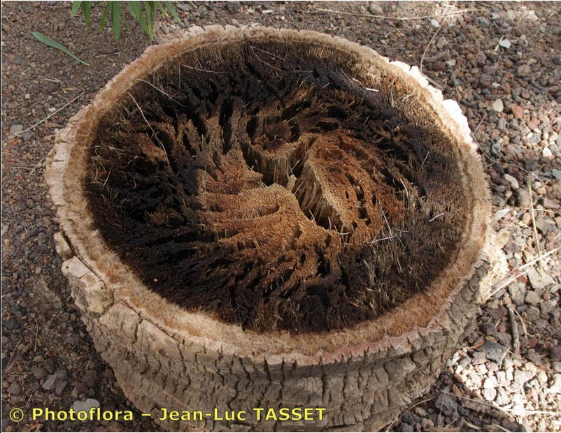 Stamm anfangs nur aus Blattscheiden und Blattbasen bestehend