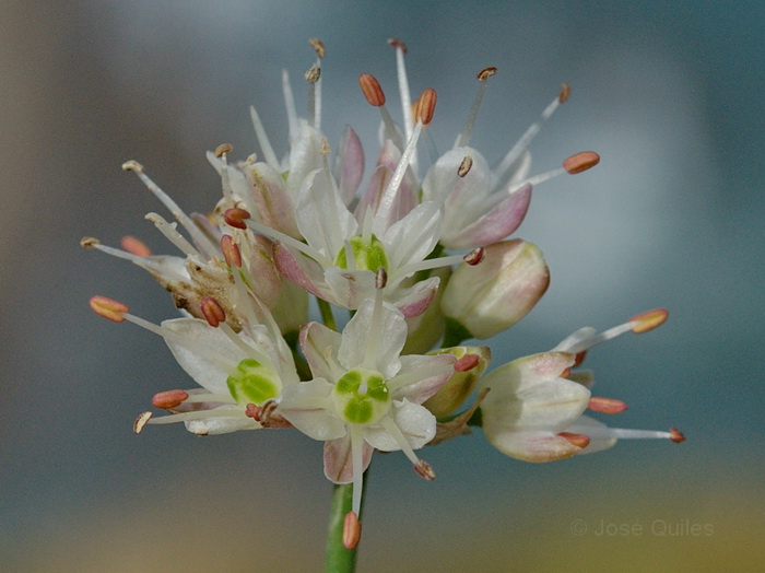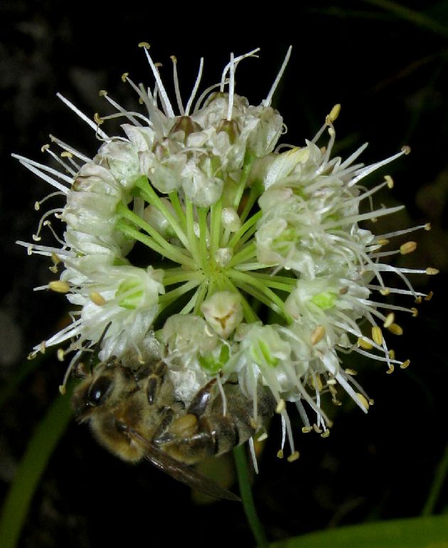 Bulbillen, Blüten weiß oder grünlich, in kugeligen vielblütigen Köpfchen,