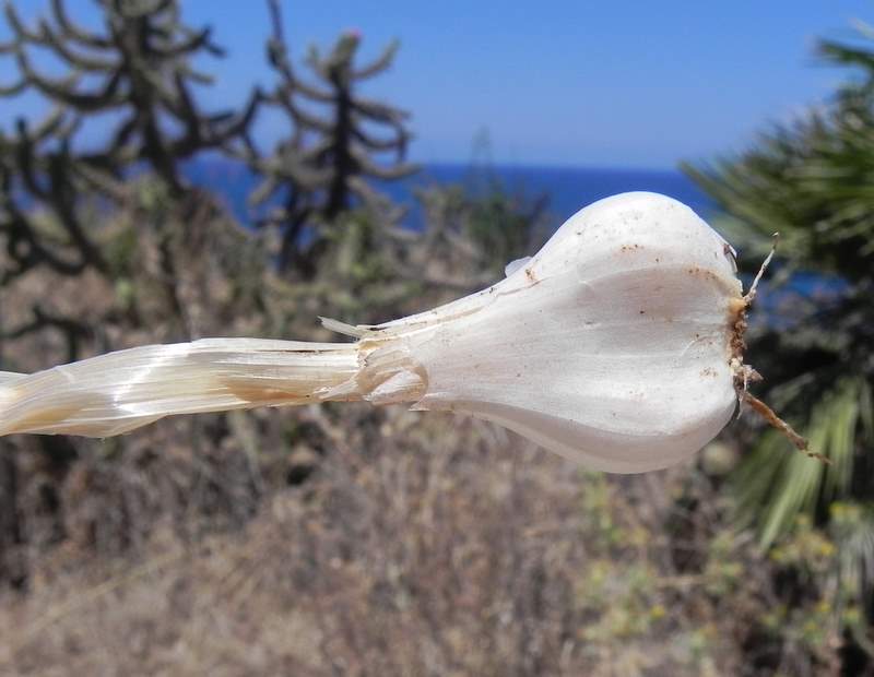 Blätter im vorderen Teil auf der Oberseite rinnig Zwiebel eiförmig, 1 - 2 cm im Durchmesser, äußere Tunica weiß, papierartig, mit parallelen Fasern, Nebenzwiebeln vorhanden