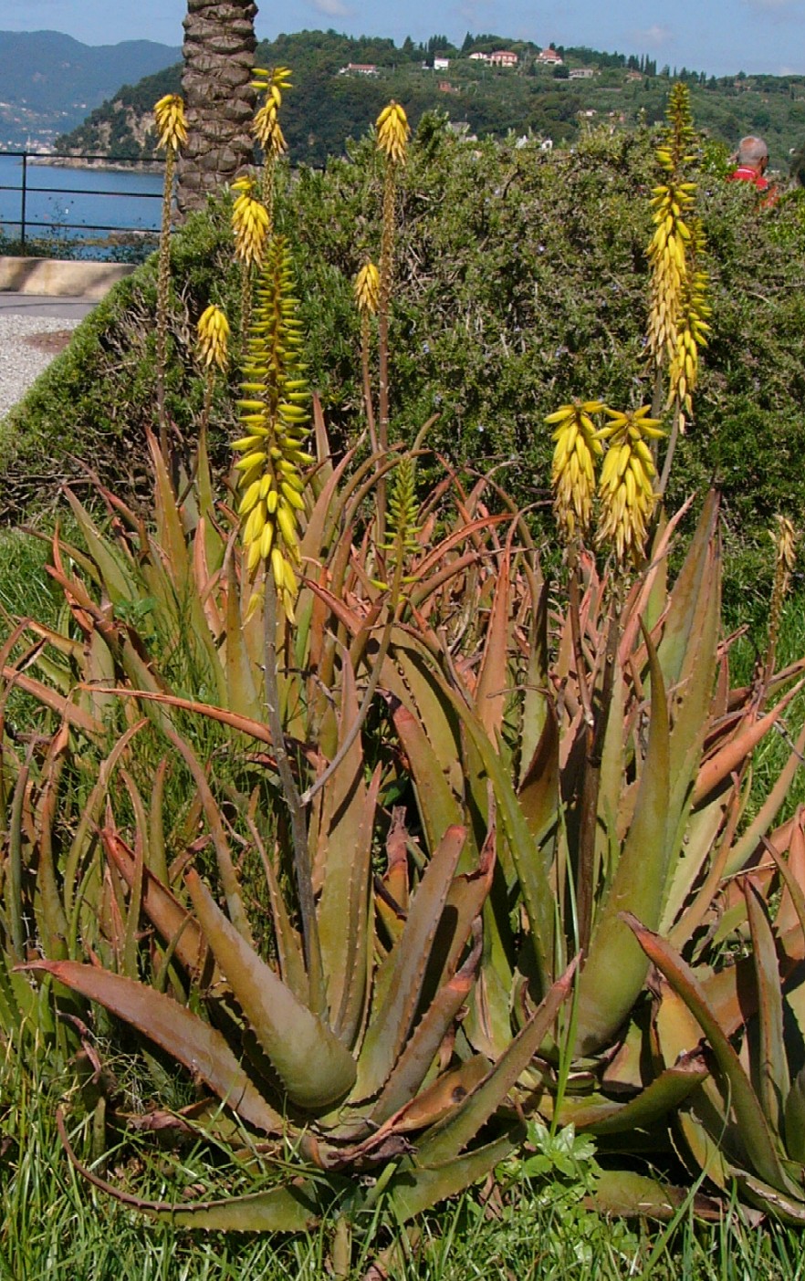 Aloe vera (L.) Burm. fil. (Echte Aloe) I - XII, Rabatten Synonyme: English name: Nom francais: Nome italiano: Weltweite Verbreitung: Eingebürgert in: Etymologie: Widely cultivated! Anwendung: