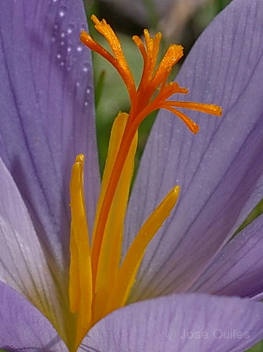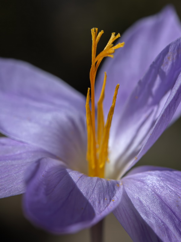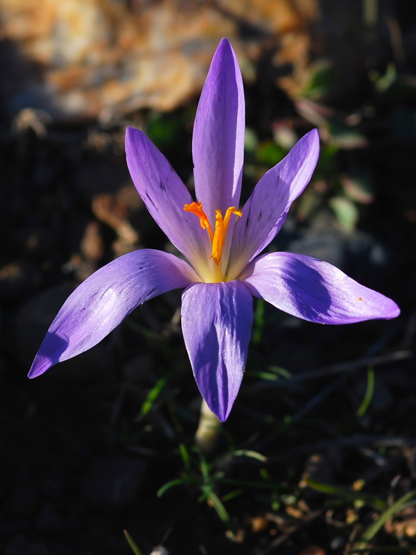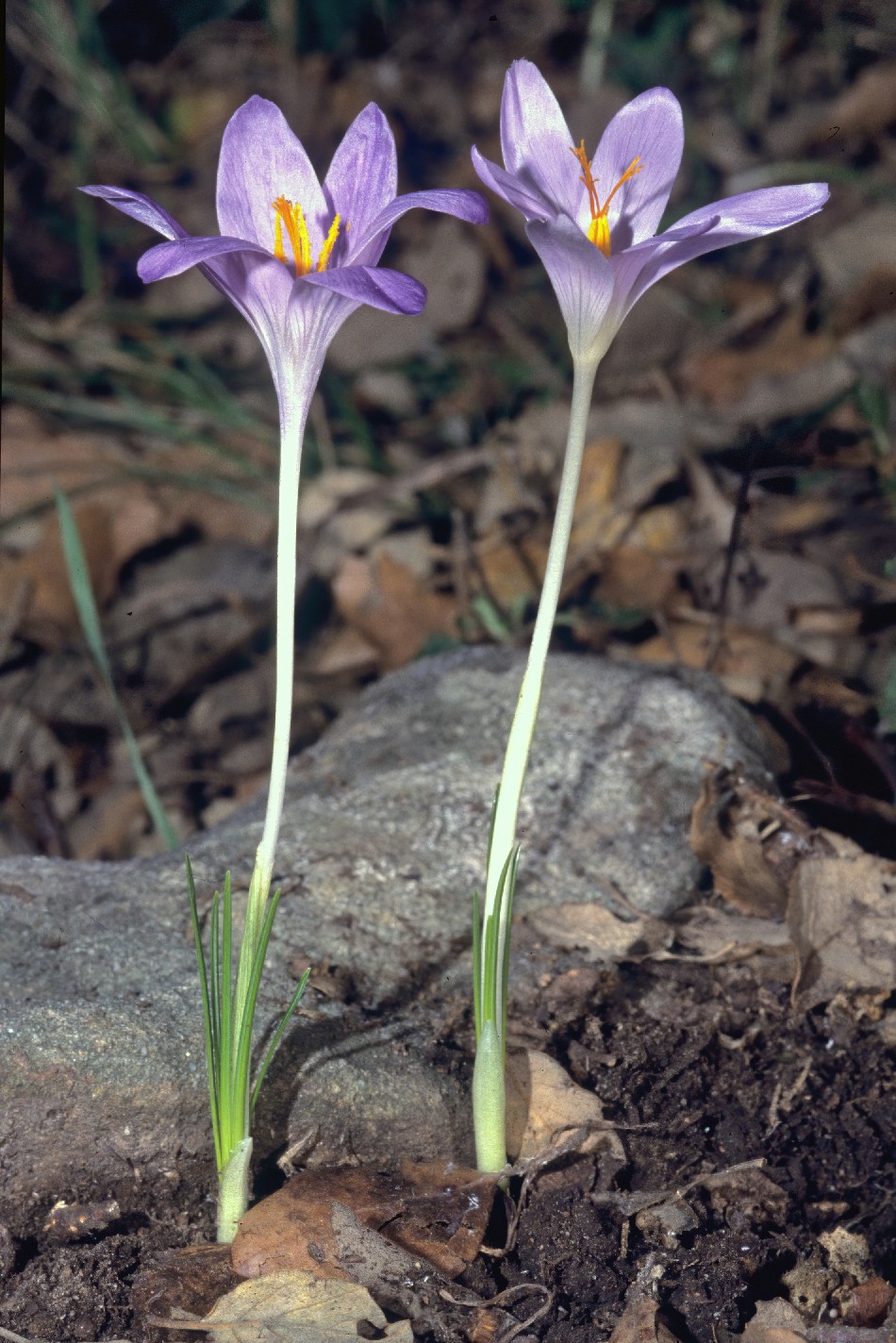 Crocus - Herbstblüher, Blüten überwiegend violett, hellblau oder rosa,innere und äußere Perigonblätter +- gleich groß, Staubbeutel gelb, Griffel orange, vielästig, Blätter zur Blütezeit vorhanden