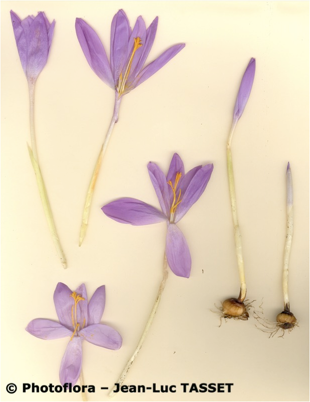 Crocus - Herbstblüher, Blüten überwiegend violett, hellblau oder rosa, innere und äußere Perigonblätter +- gleich groß, Staubbeutel gelb, Griffel orange, vielästig, Blätter zur Blütezeit nicht entwickelt