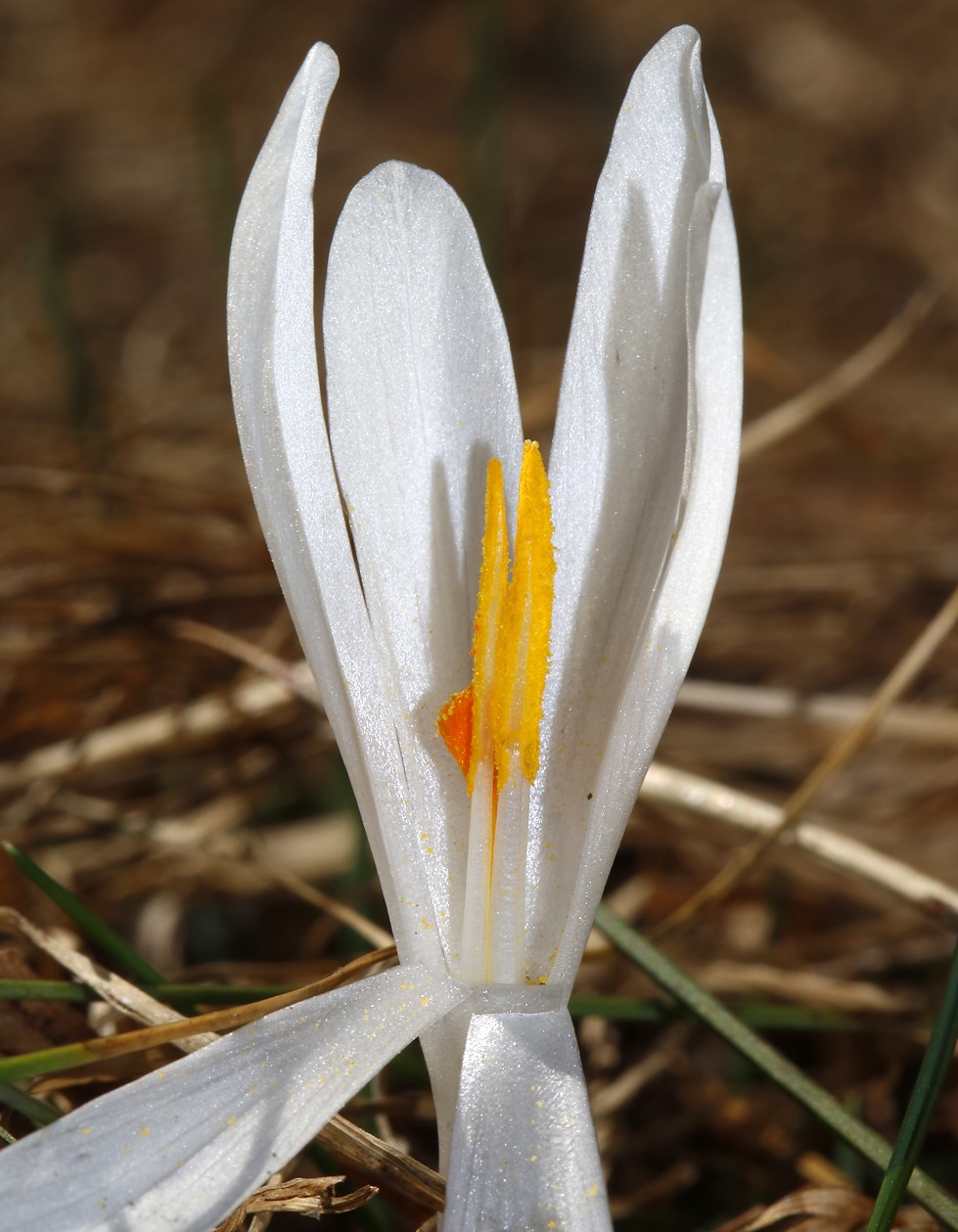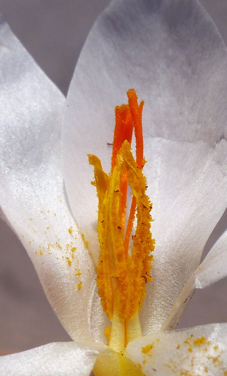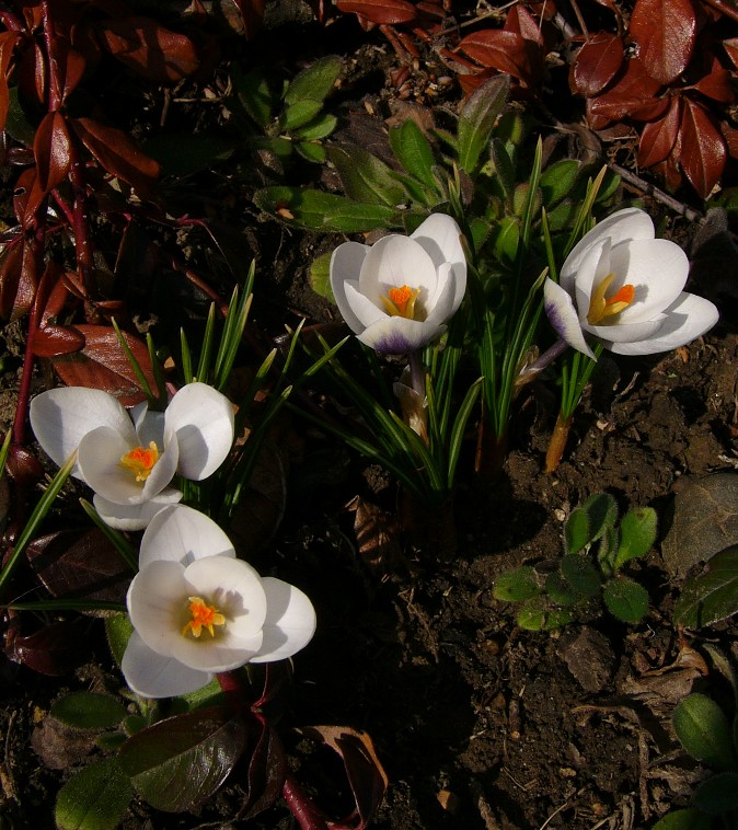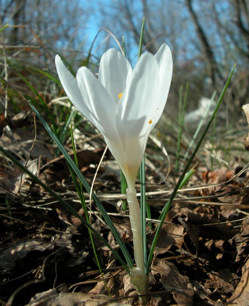 Crocus - Frühjahrsblüher, Blüten überwiegend weiß, Schlund weiß oder violett, Narbe mit 3 Ästen
