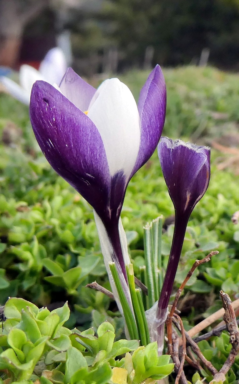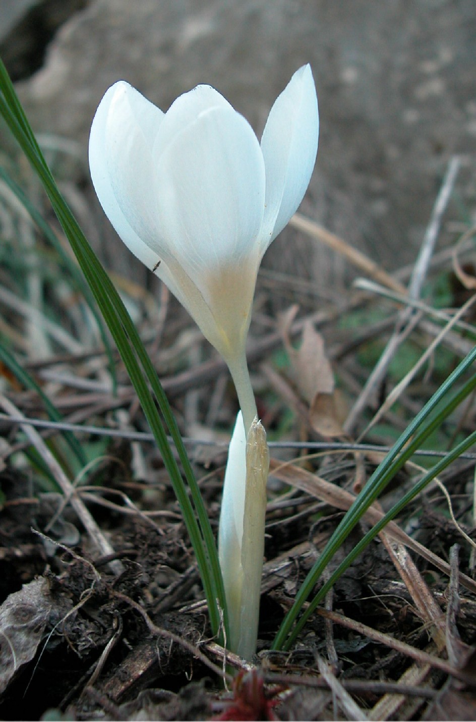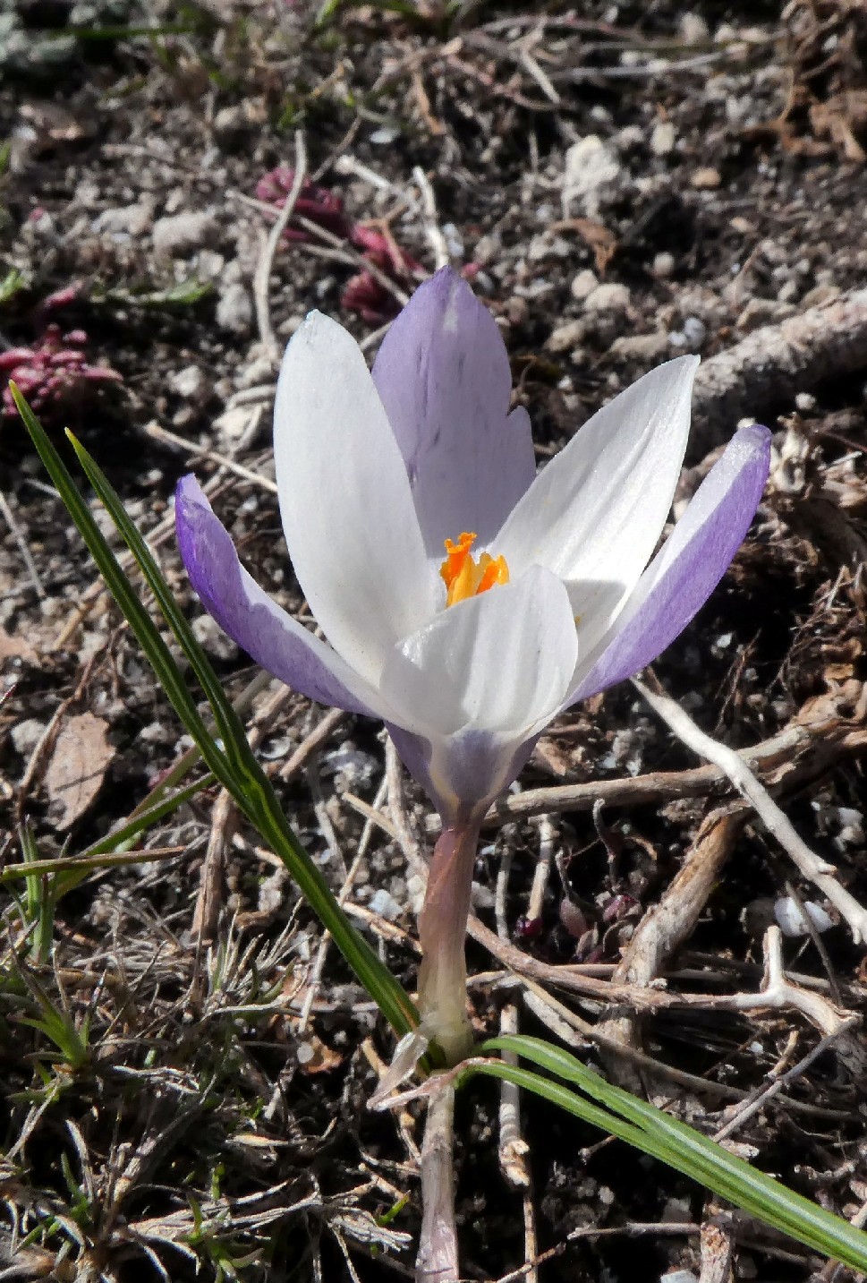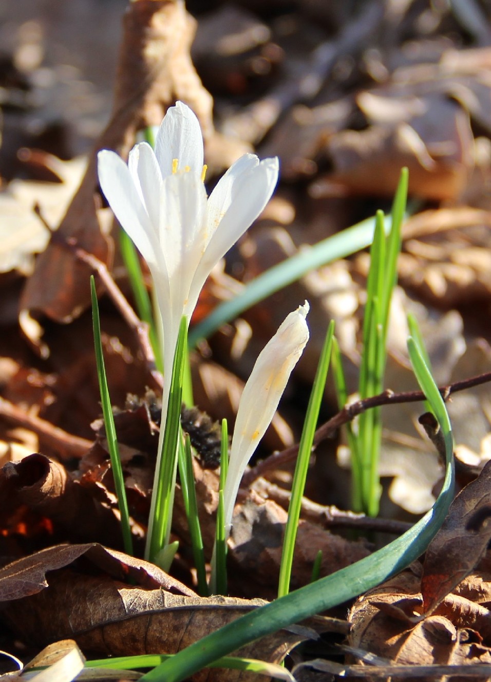 Crocus - Frühjahrsblüher, Blüten überwiegend weiß, Schlund weiß oder violett, Narbe mit 3 Ästen