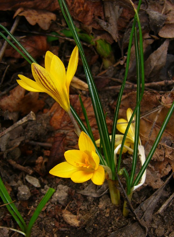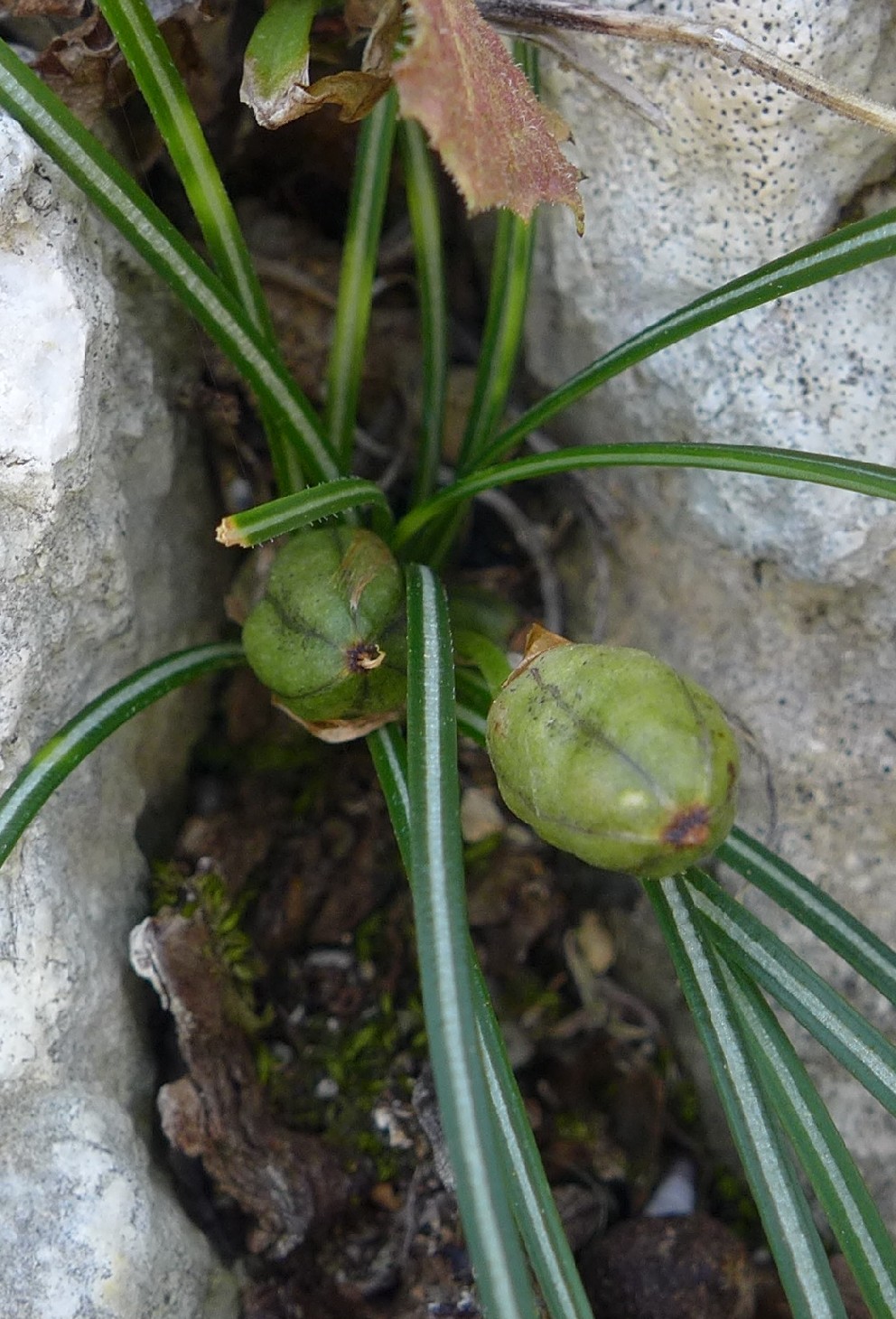 Blätter alle grundständig, 0,5 - 6 mm breit, ganzrandig, parallelnervig, kahl, oberseits meist mit weißem Mittelstreifen, am Rand kahl oder bewimpert