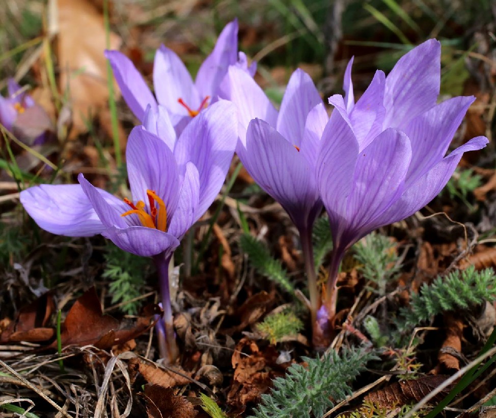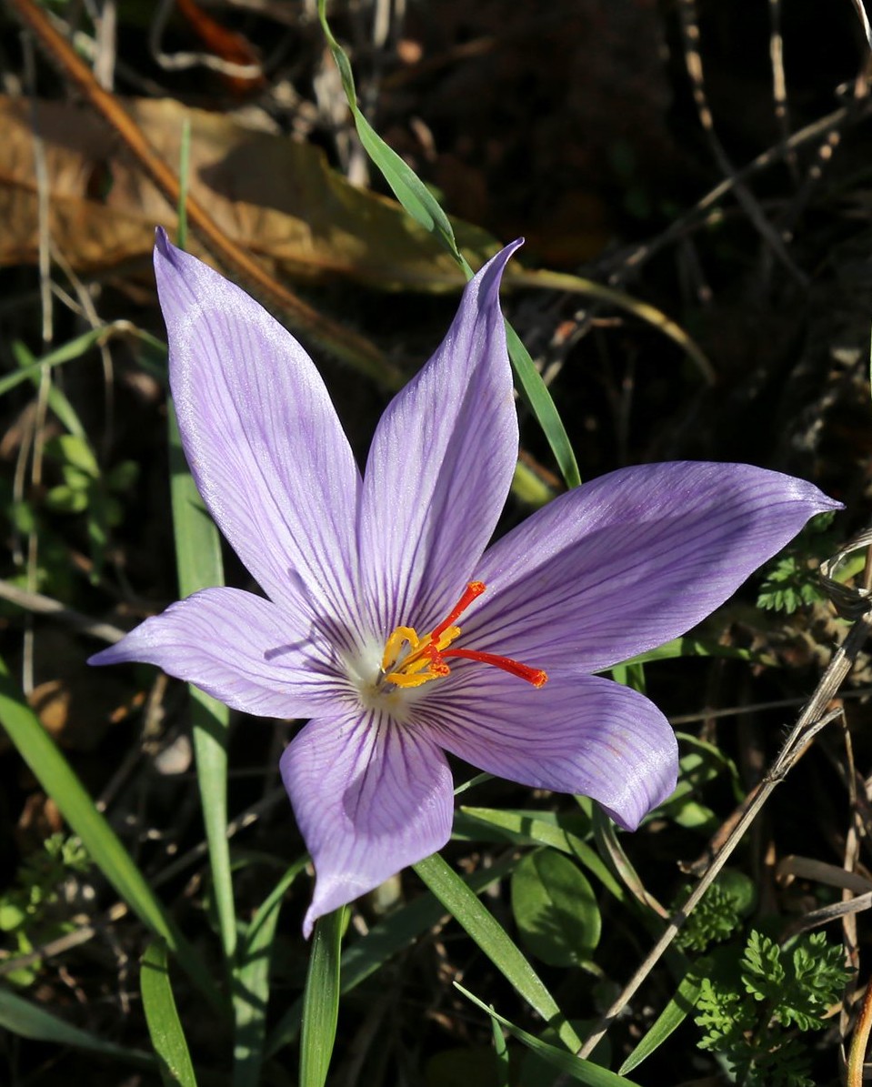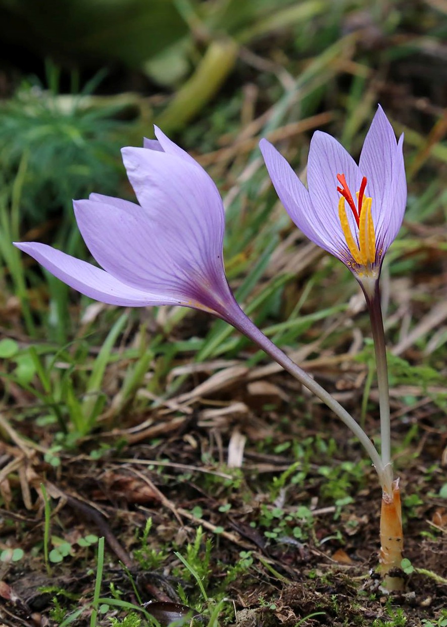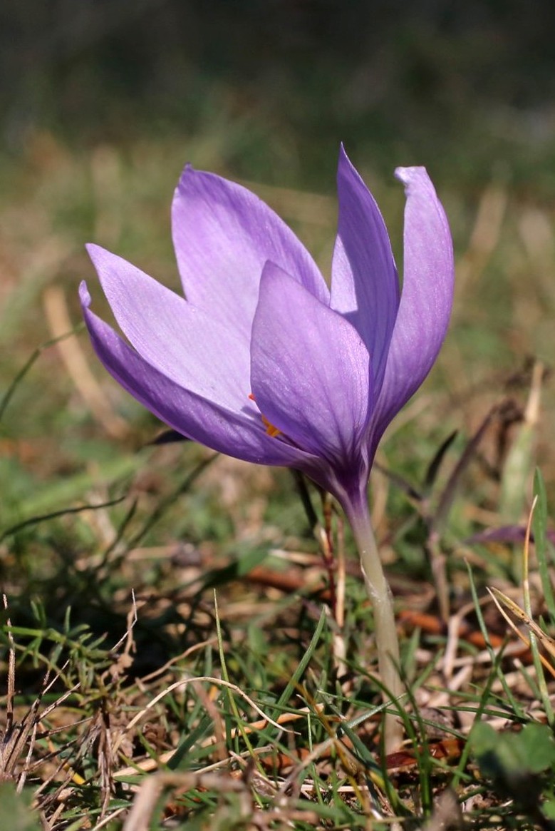 Crocus - Herbstblüher, Blüten überwiegend violett, hellblau oder rosa,innere und äußere Perigonblätter +- gleich groß, Staubbeutel gelb, Griffel rot, mit 3 Ästen, höchstens halb so lang wie die Perigonzipfel
