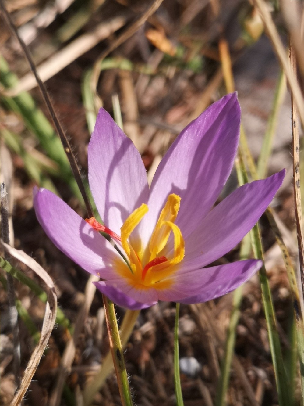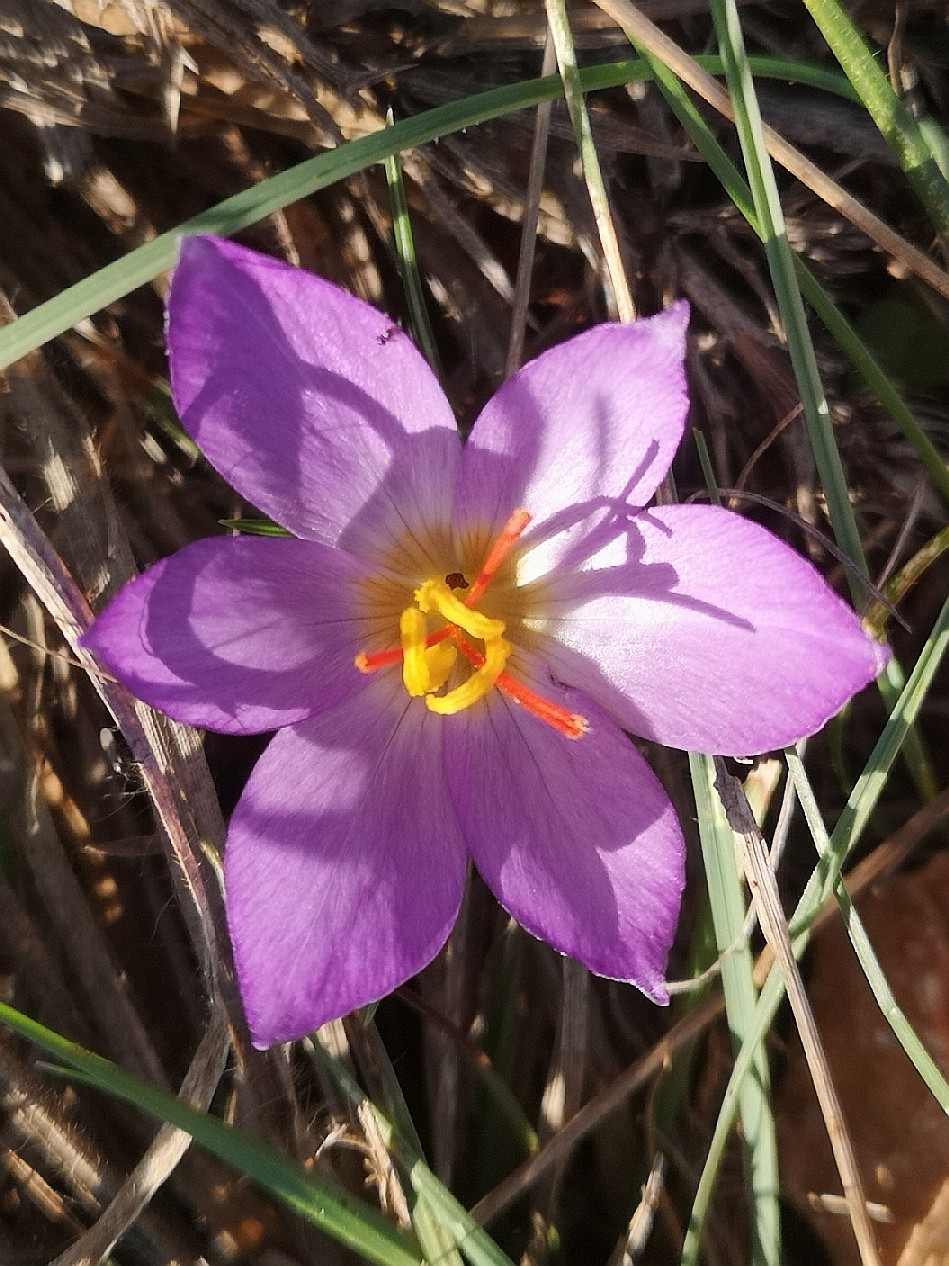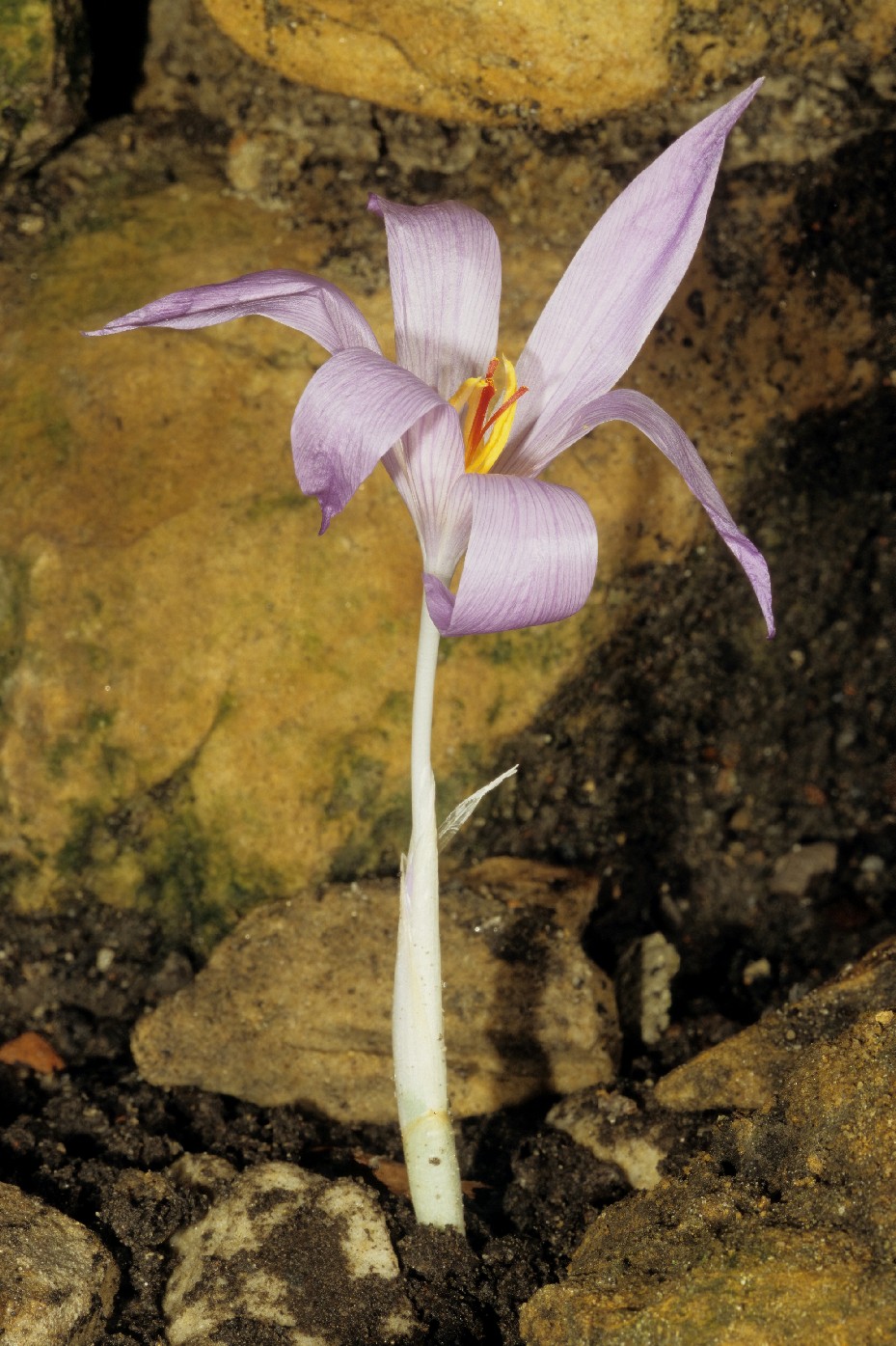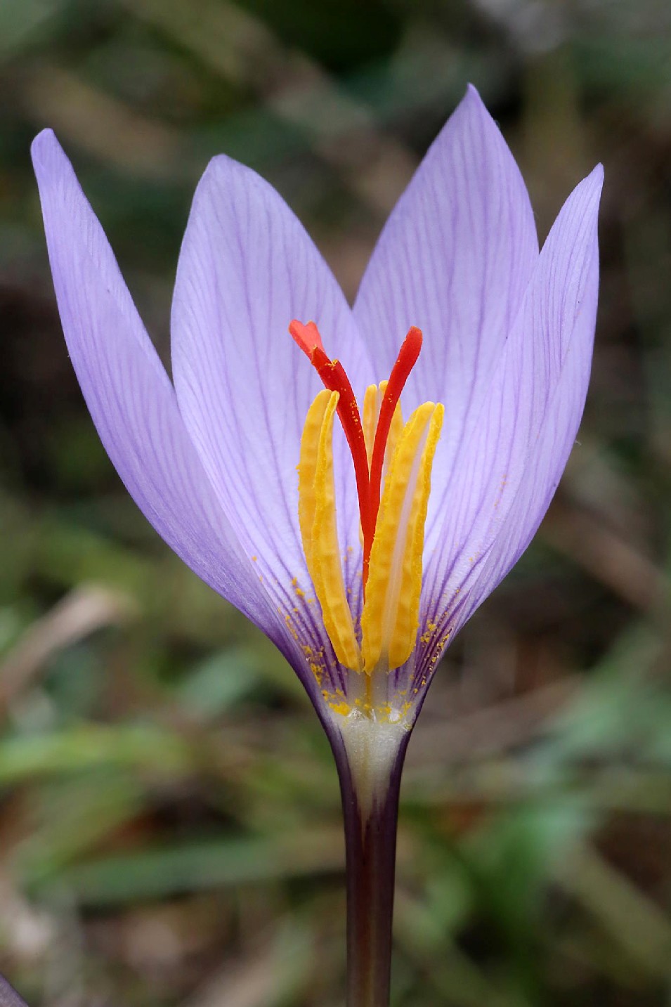 Crocus - Herbstblüher, Blüten überwiegend violett, hellblau oder rosa,innere und äußere Perigonblätter +- gleich groß, Staubbeutel gelb, Griffel rot, mit 3 Ästen, höchstens halb so lang wie die Perigonzipfel