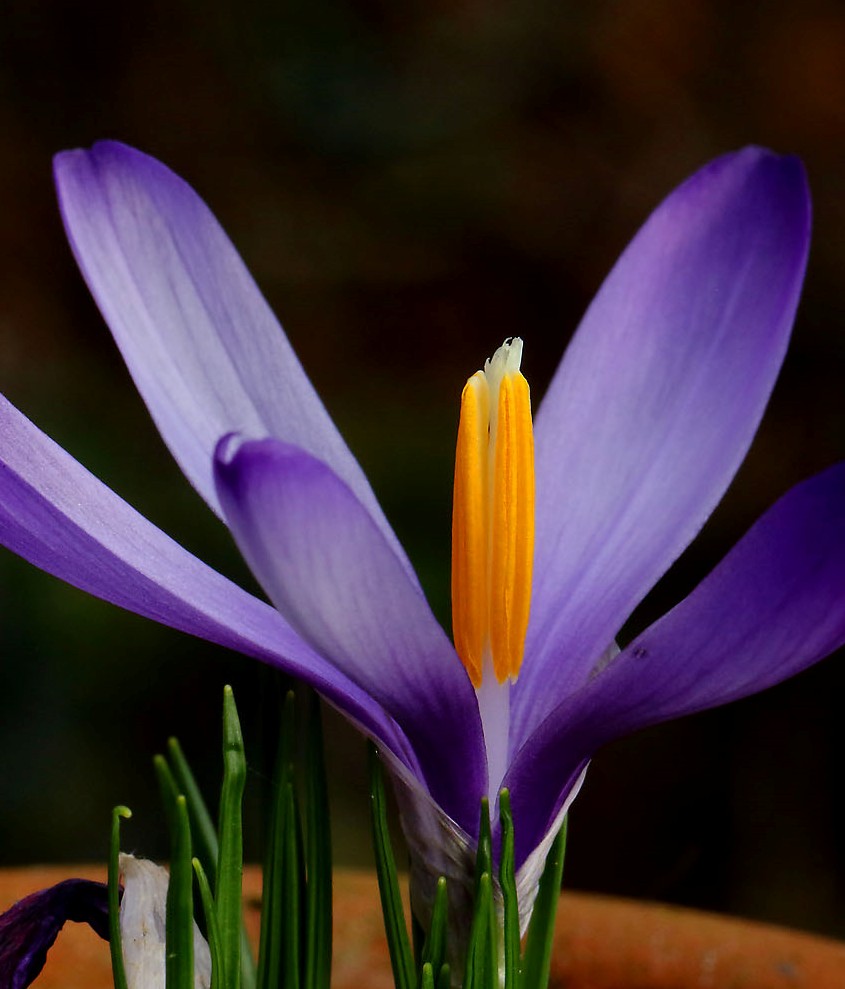 Perigonzipfel innen und außen dunkelviolett, 22 - 32 mm lang, 6 - 12 mm breit, Schlund weißlich, mit sternförmigen Rändern