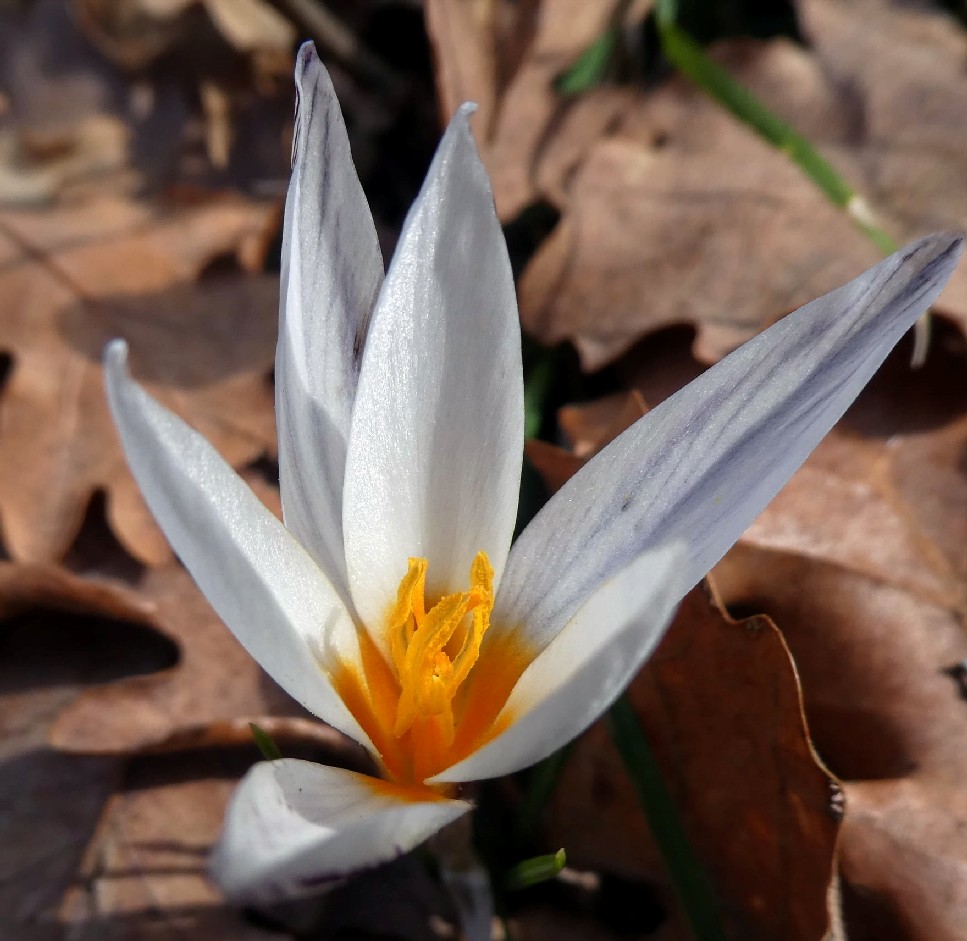 Blüten überwiegend weiß, Griffel orange, Äußere