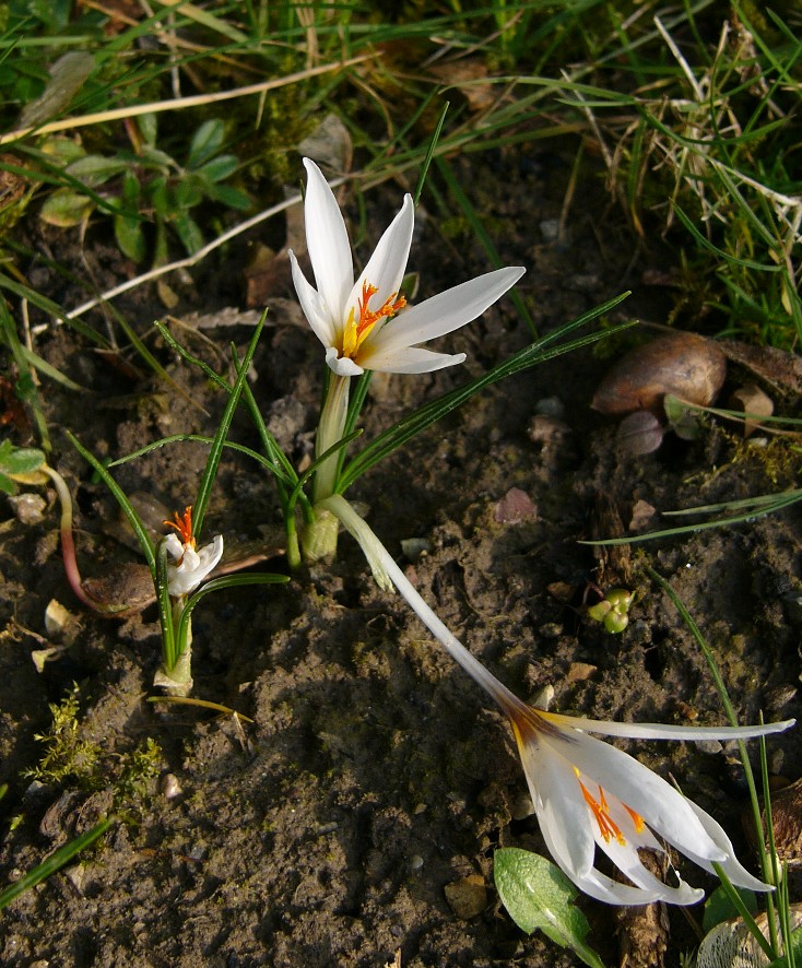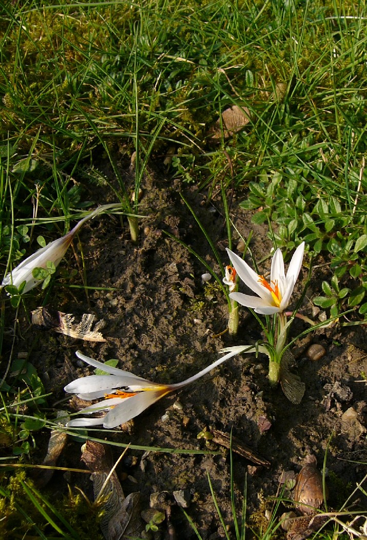 Crocus - Frühjahrsblüher, Blüten überwiegend weiß, Narbe mit 6 oder mehr Ästen