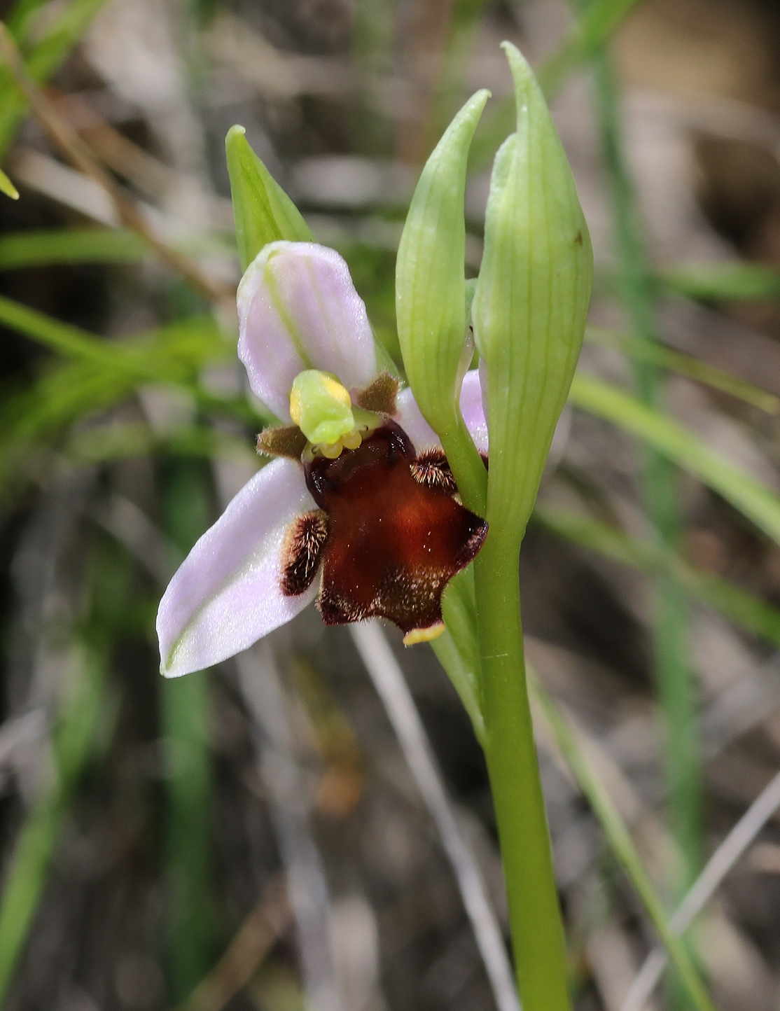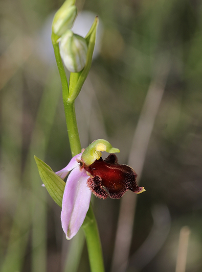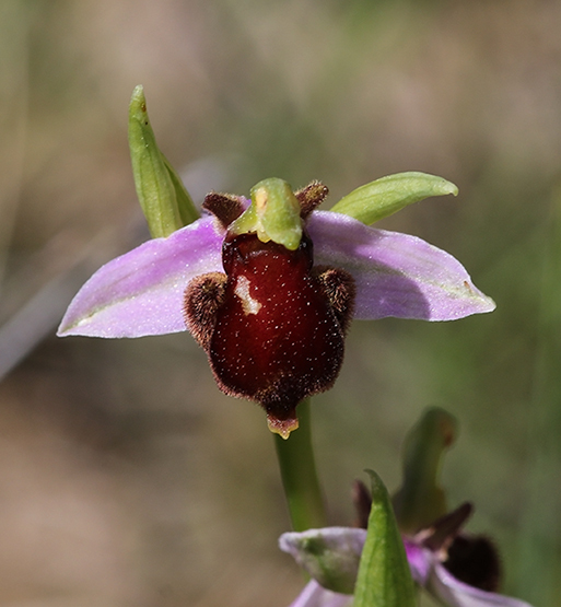 Blüten dunkelbraun, Lippenmal unauffällig,