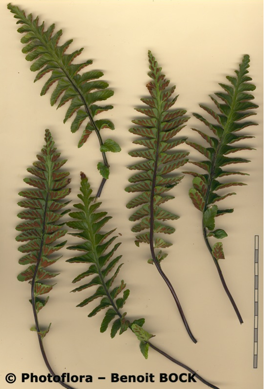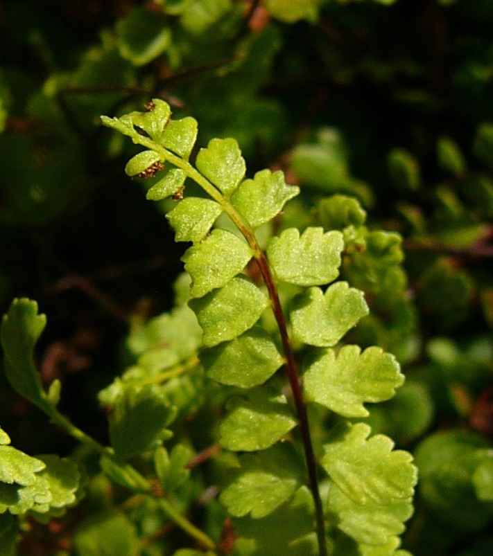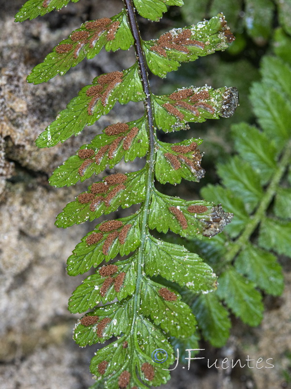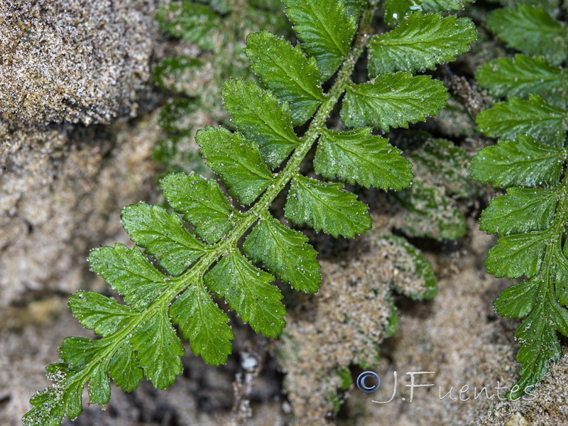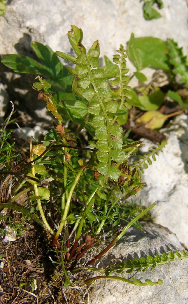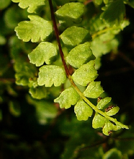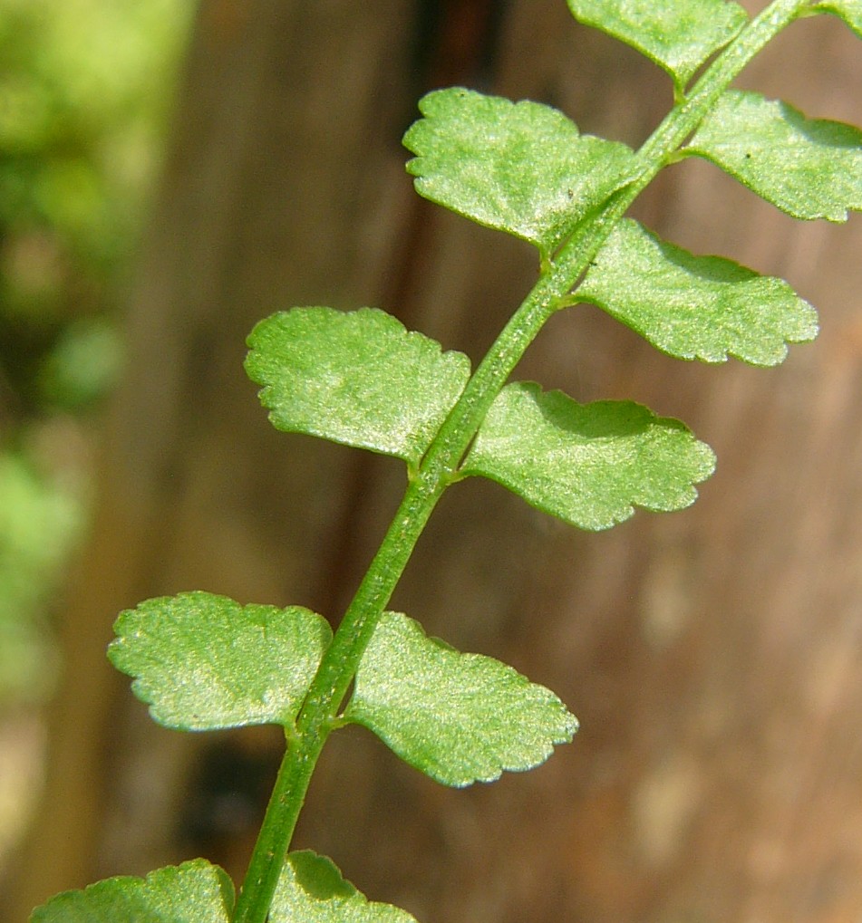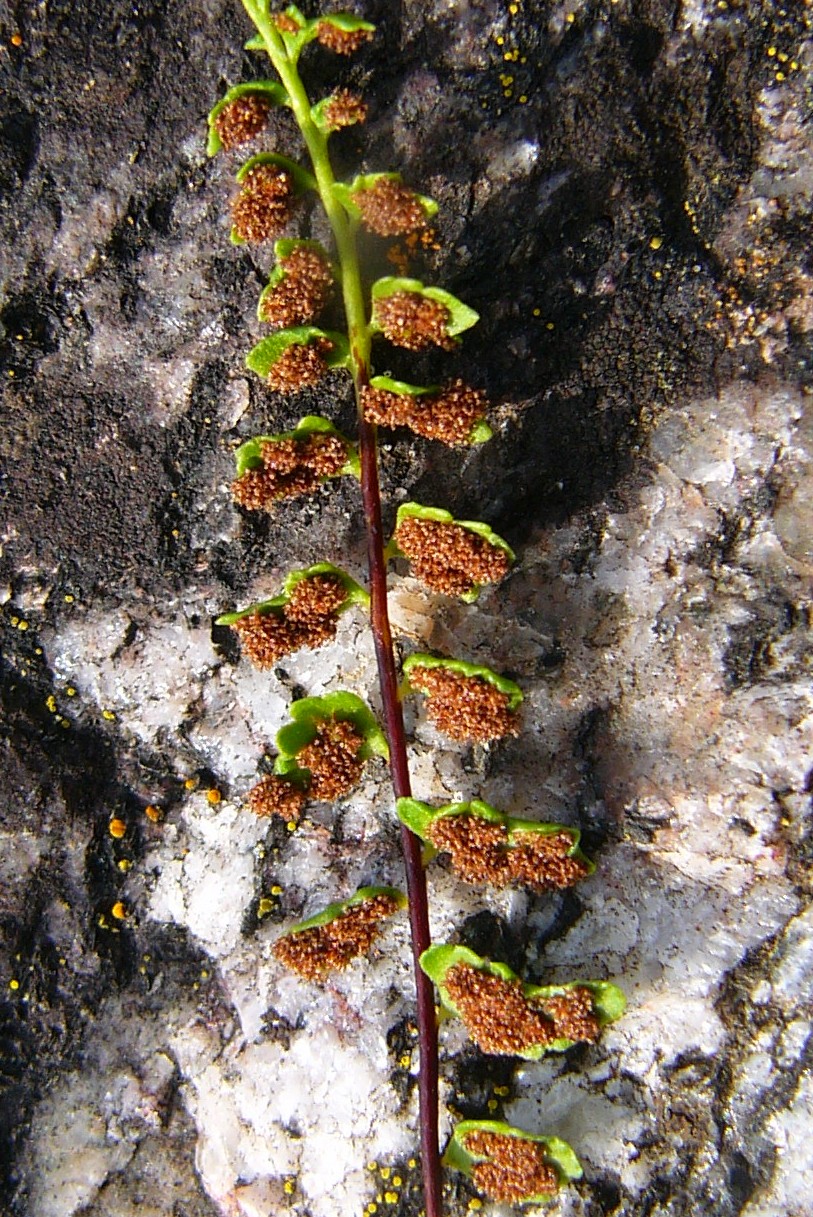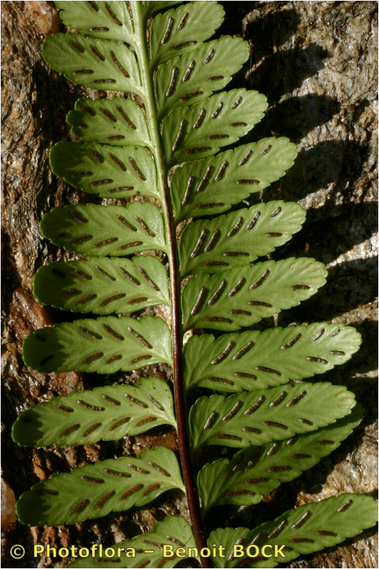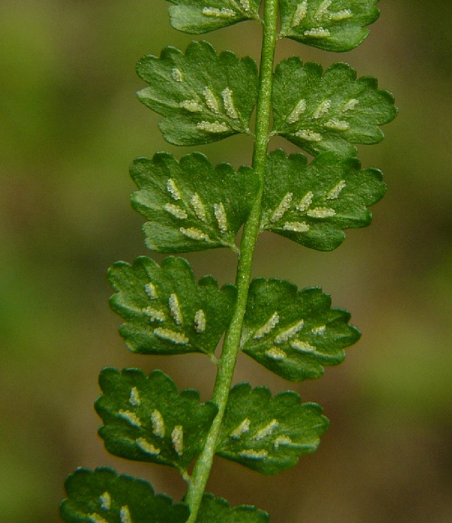 Pflanze 5 - 20 cm groß Blätter einfach gefiedert, 15 - 40 Fiederpaare, Blattstiel kürzer als die Spreite Blattspindel braun, ungeflügelt Sori +/- linealisch,