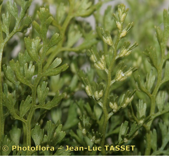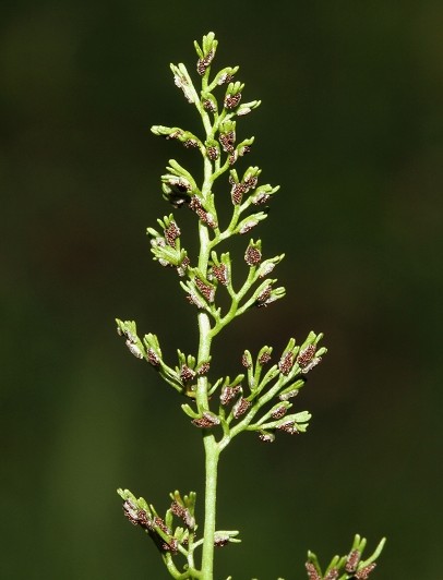 Asplenium - Blätter gefiedert, kahl, Fiederchen gestielt, Endfiederchen schmal keilförmig (< 3 mm breit), Blattstiel grün