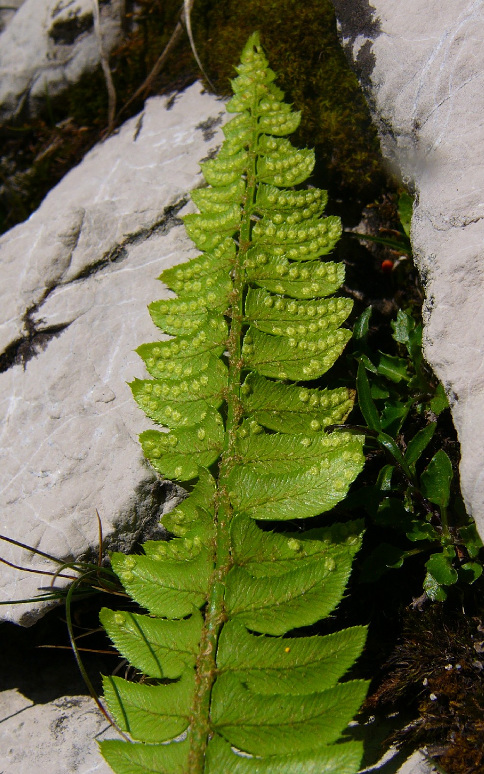 Blattrhachis spärlich mit lanzettlichen, braunen Schuppenhaaren besetzt