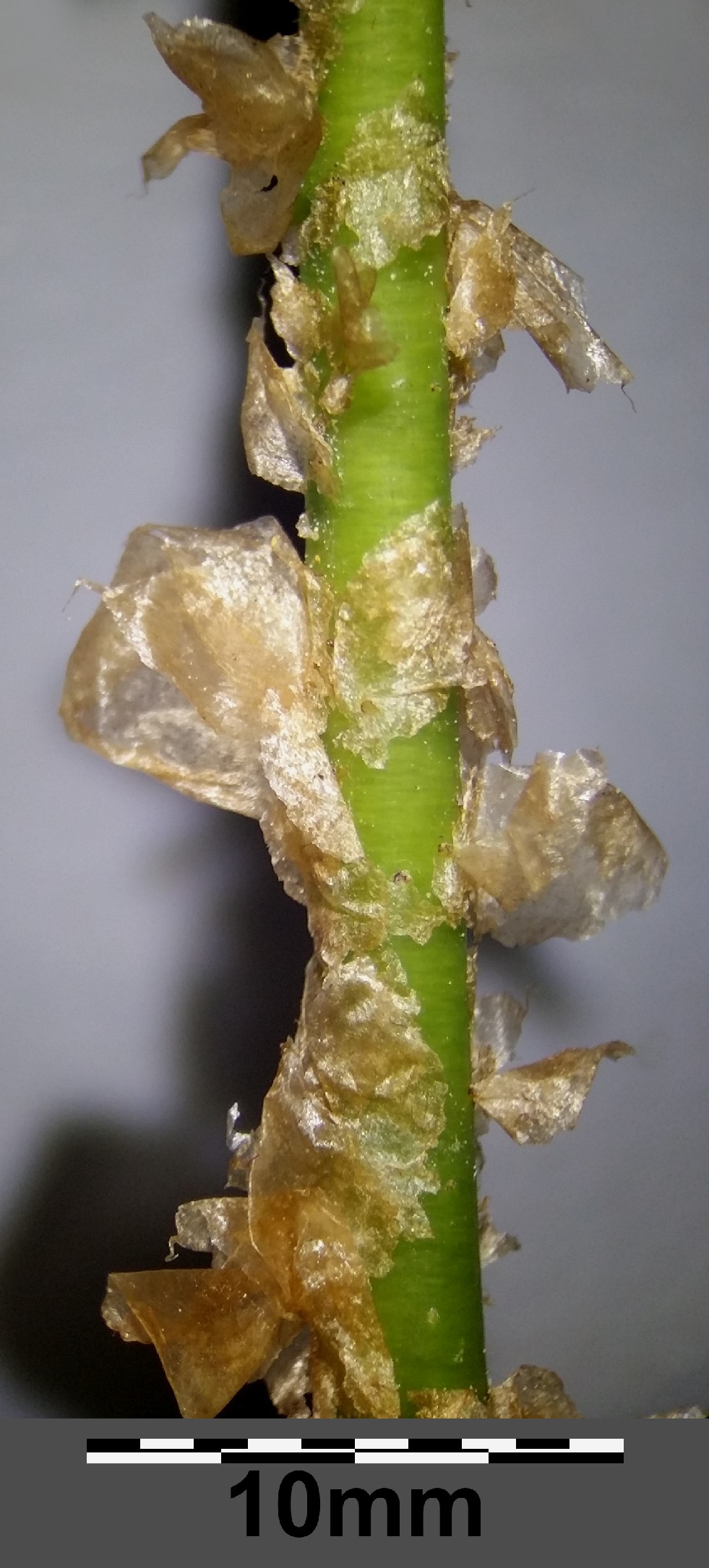 Reife Sporangien schwarz, Schleier lang haftend, nicht drüsig Blattstiel spärlich spreuschuppig, meist drüsenlos