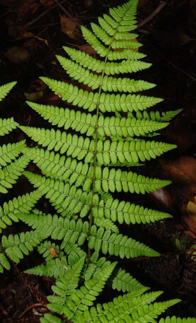 Blattspreite meist dunkelgrün, Fiederspindel oberseits am Grund violettschwarz Fiederabschnitte mit kurzen Stachelspitzen Blattstiel und Blattspindel mit zweifarbigen Spreuschuppen > 2