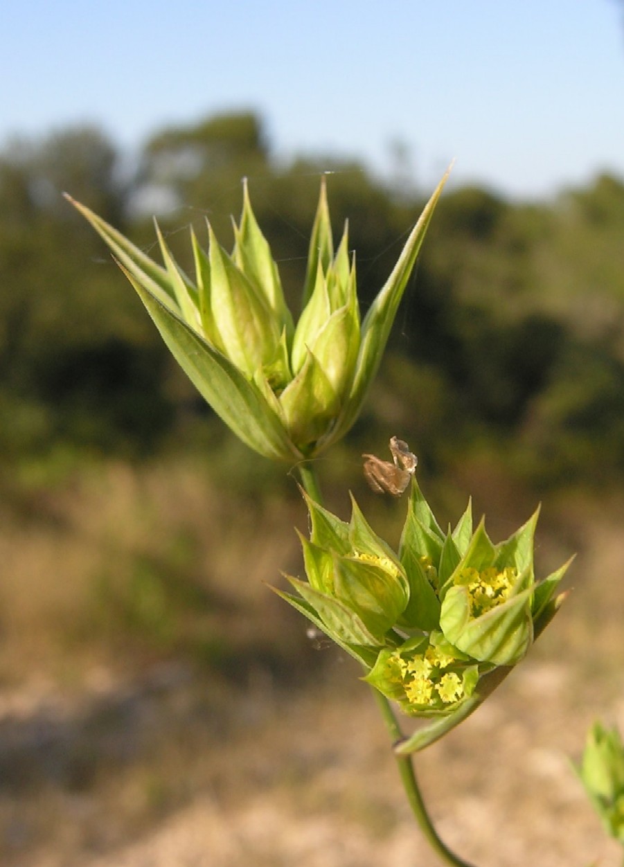 Bupleurum- Pflanze krautig - Obere Stängelblätter