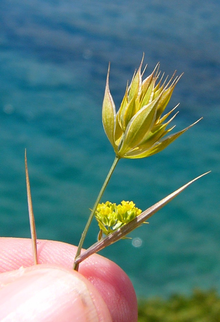 und des Mount Giona Blütendolde nur mit 1 Doldenstrahl, die beiden Hüllblätter sind direkt unter den Hüllchenblättern > 1