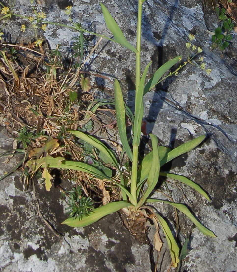 3 Stängelblätter linealisch, sitzend, Grundblätter linealisch