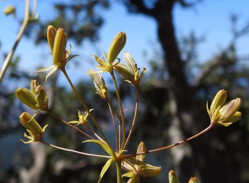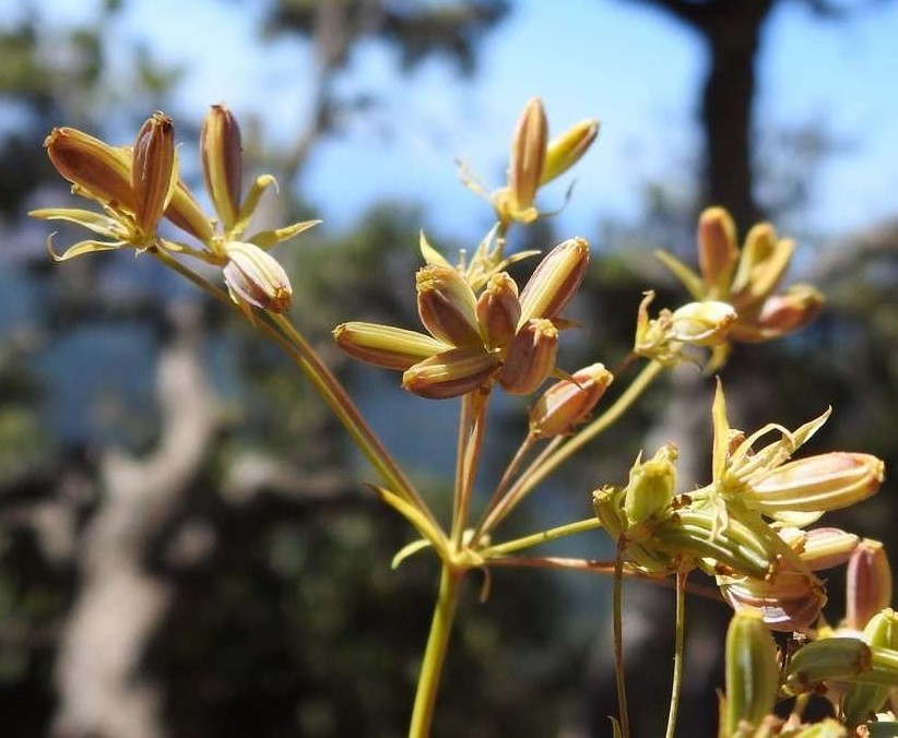1 Seltener Endemit in Sizilien, Dolden mit 5 - 7 Hüllblättern, Wurzelstock mit den Resten vertrockneter Blätter bedeckt