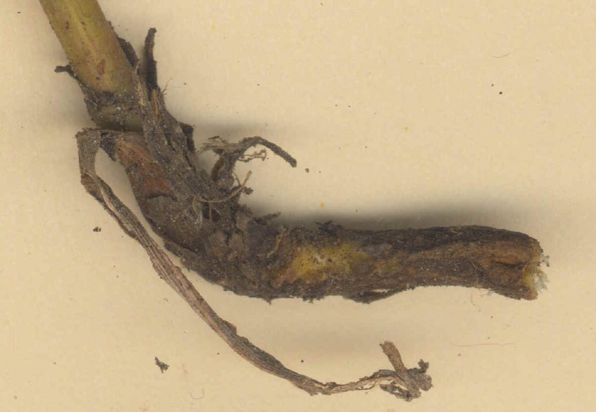 Wurzelstock +/- ohne Reste vertrockneter Blätter