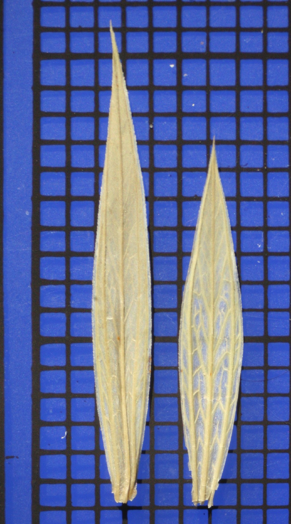 Stängelblätter linealisch bis hasenohrähnlich, parallelnervig, mit 3 (-5) Nerven, spitz