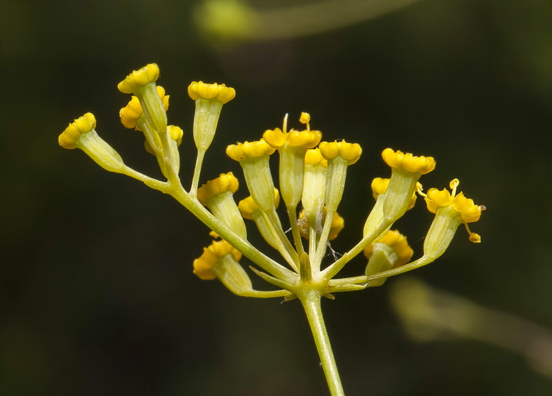 Krone gelb, Dolde 2 - 5- strahlig, jedes Döldchen mit 3 - 10 Blüten