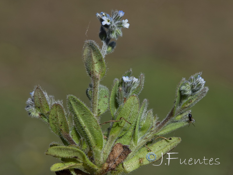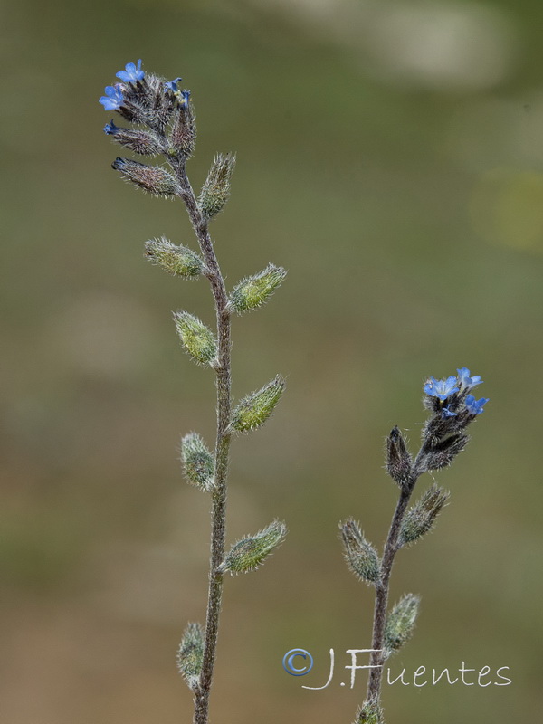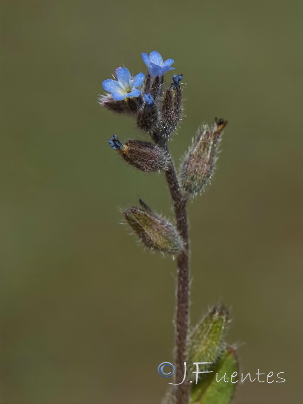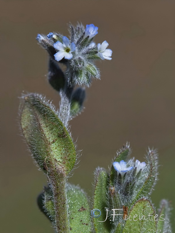 Myosotis - Blüten blau, klein, +/- trichterförmig, Kelch mit Hakenhaaren, Blütenstandsachse abstehend behaart