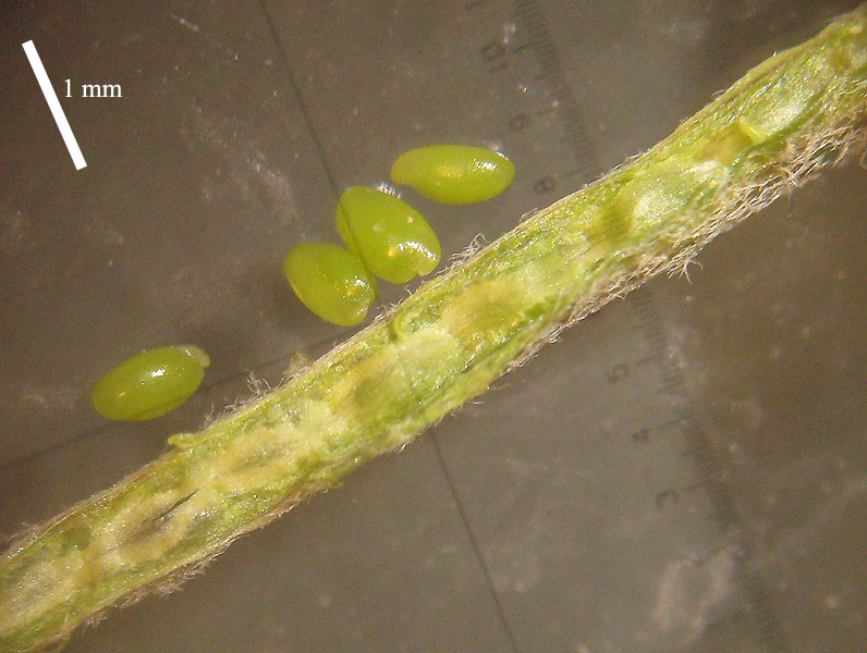 Samen eiförmig, schwach zusammengedrückt, ca. 0,5 mm lang