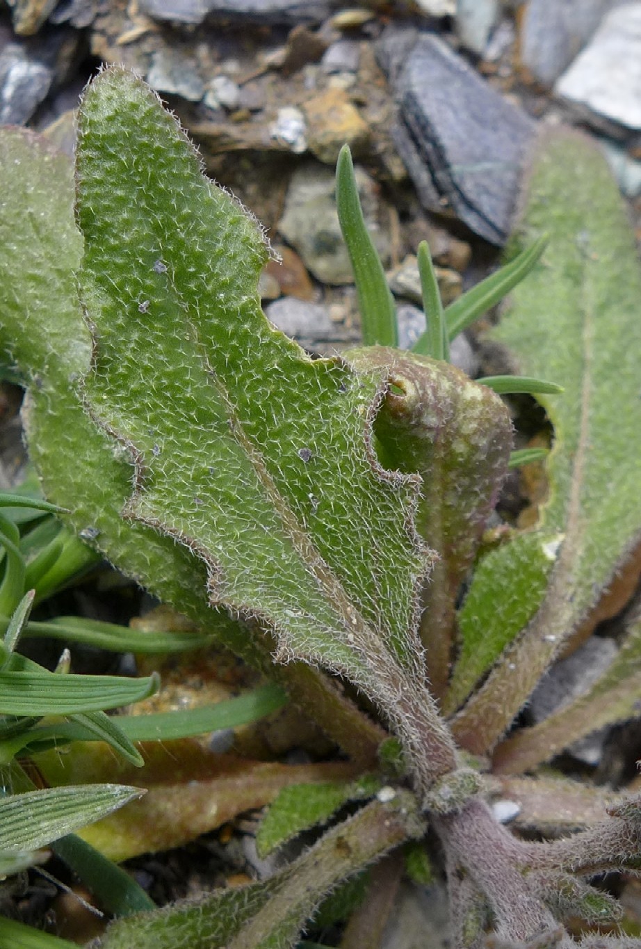 2 Blätter und Schoten +/- dicht angedrückt sternhaarig