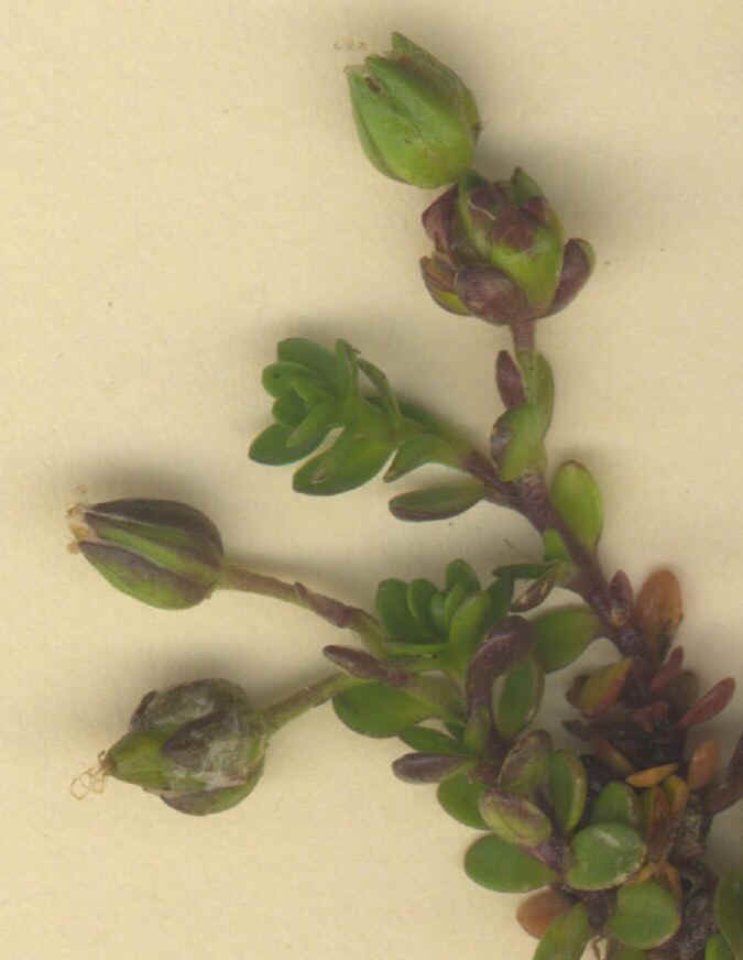 Blätter rundlich, 2 - 5 mm lang, 2 - 3 mm breit stumpf,