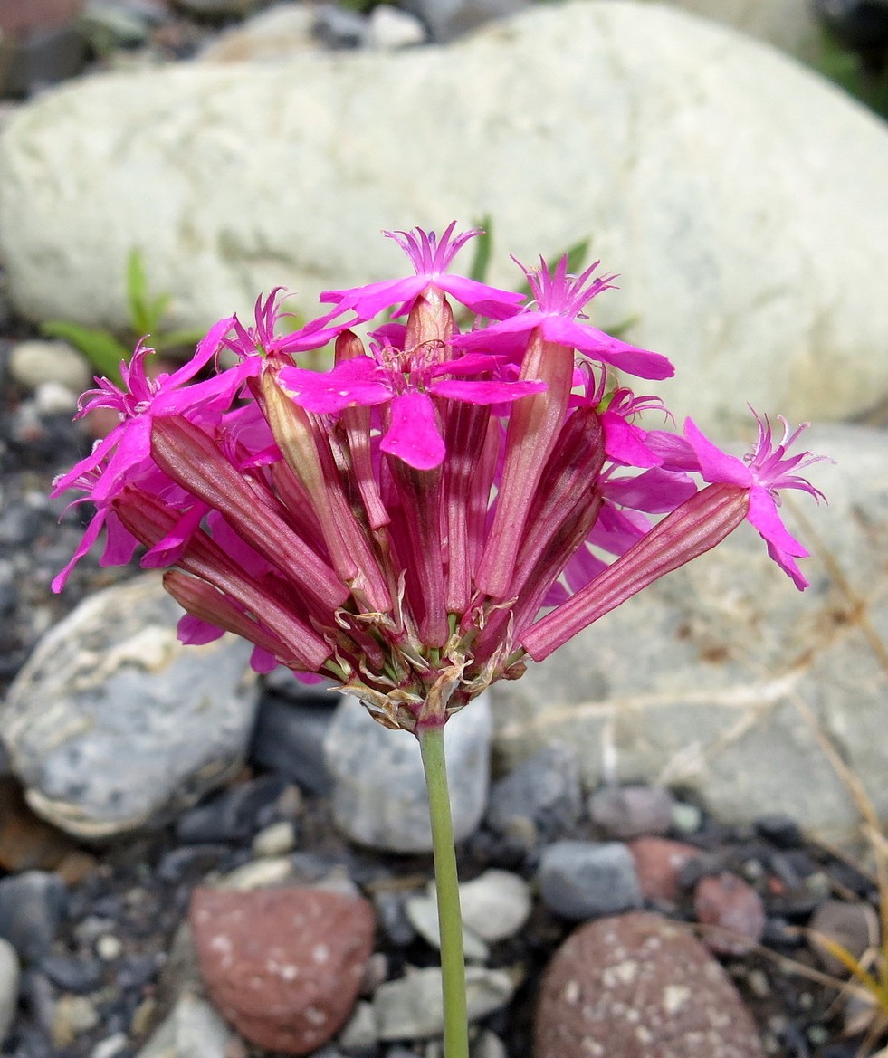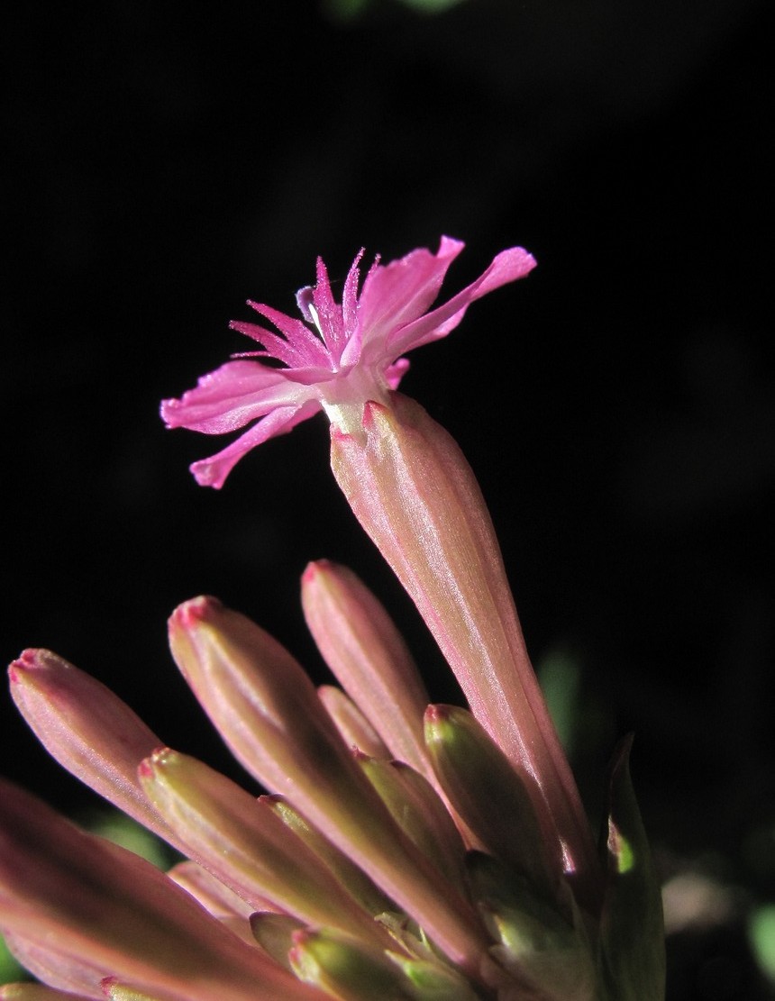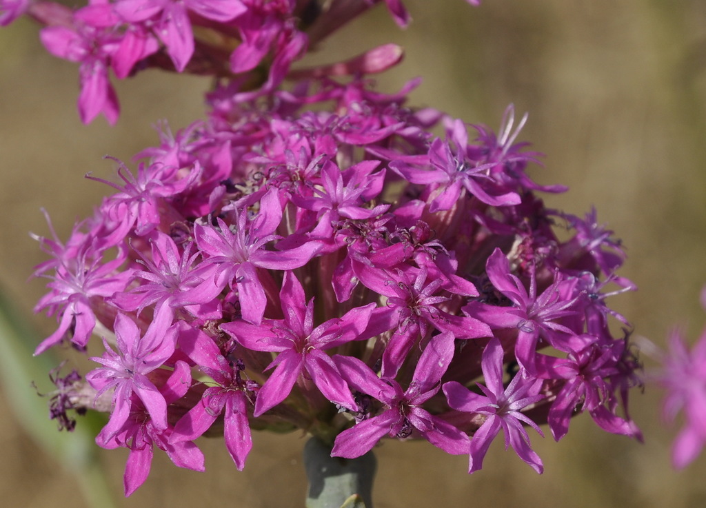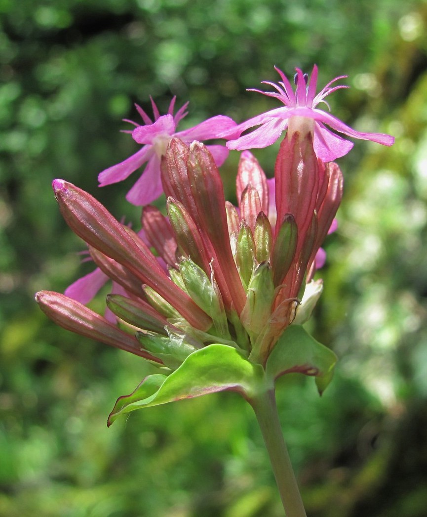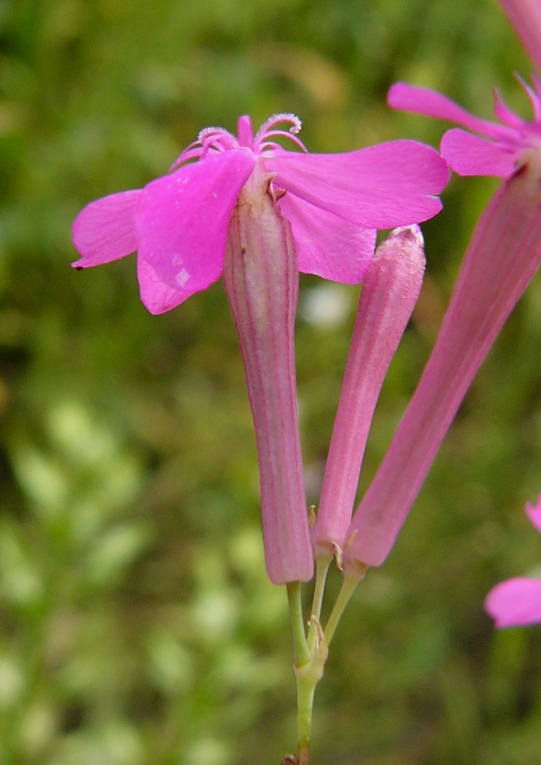 Blüten zwittrig, mit 5 Kronblättern, 10 Staubblätter, Kronblätter rötlich, mit 2- zähniger Nebenkrone, Zähne der Nebenkrone linealisch- lanzettlich, spitz