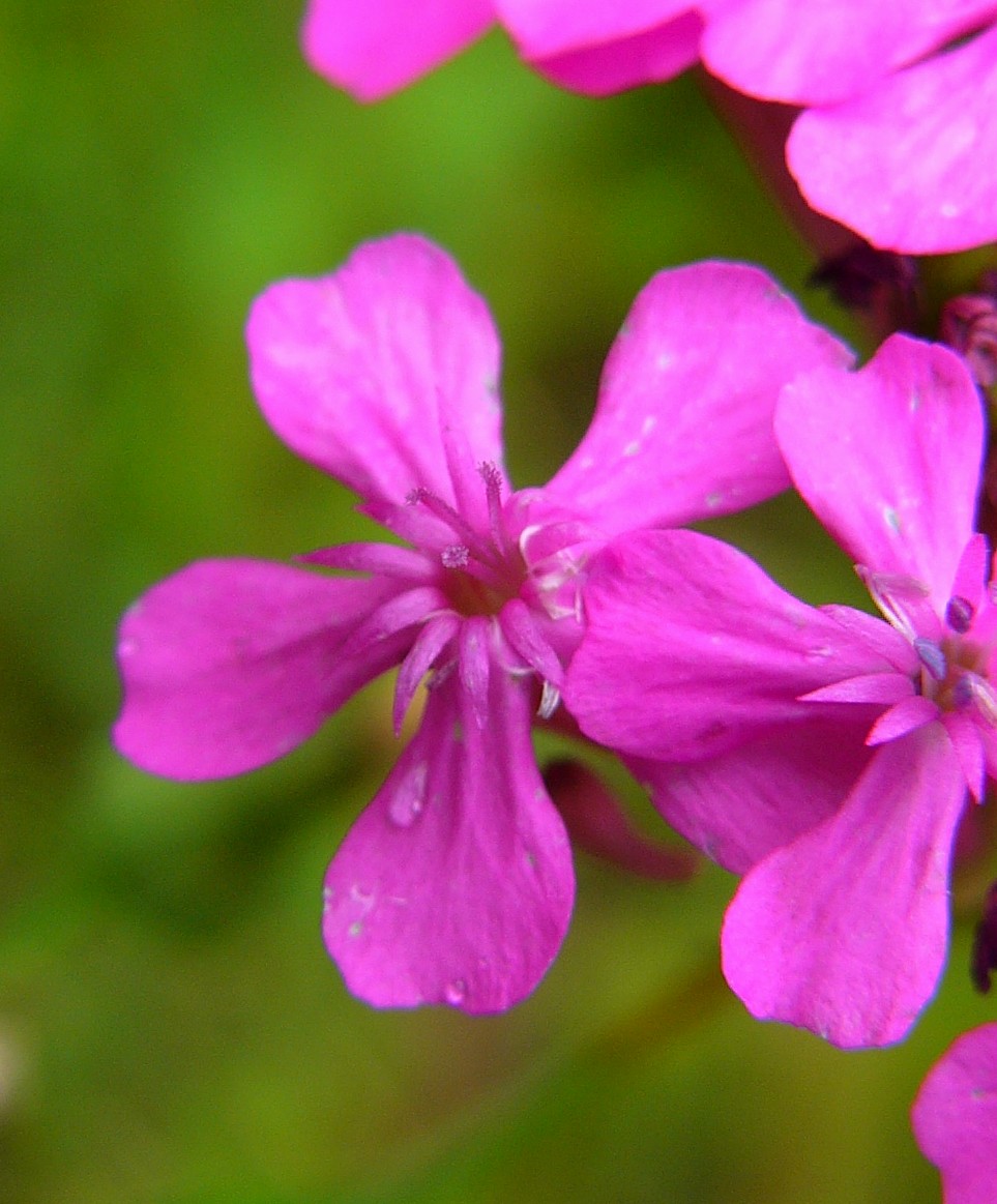 Blüten zwittrig, mit 5 Kronblättern, 10 Staubblätter, 3 GriffelKronblätter rötlich, mit 2- zähniger Nebenkrone, Zähne der Nebenkrone linealisch- lanzettlich, spitz, Platte der Kronblätter 4 mm lang, vorne schwach ausgerandet,