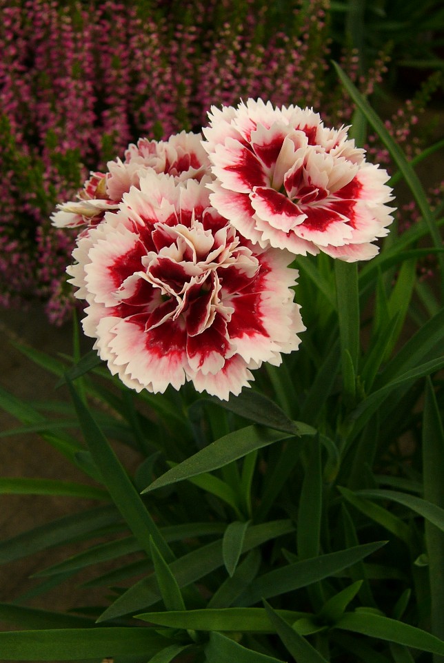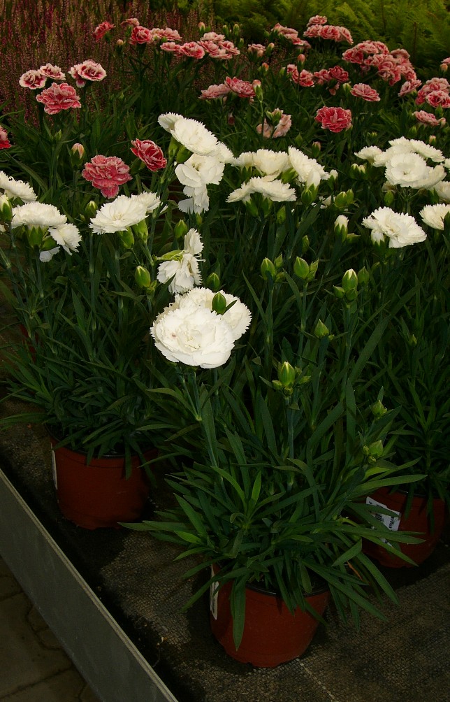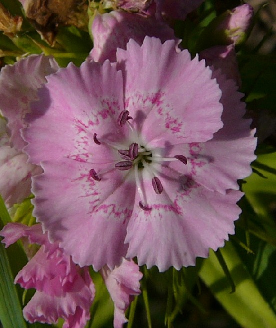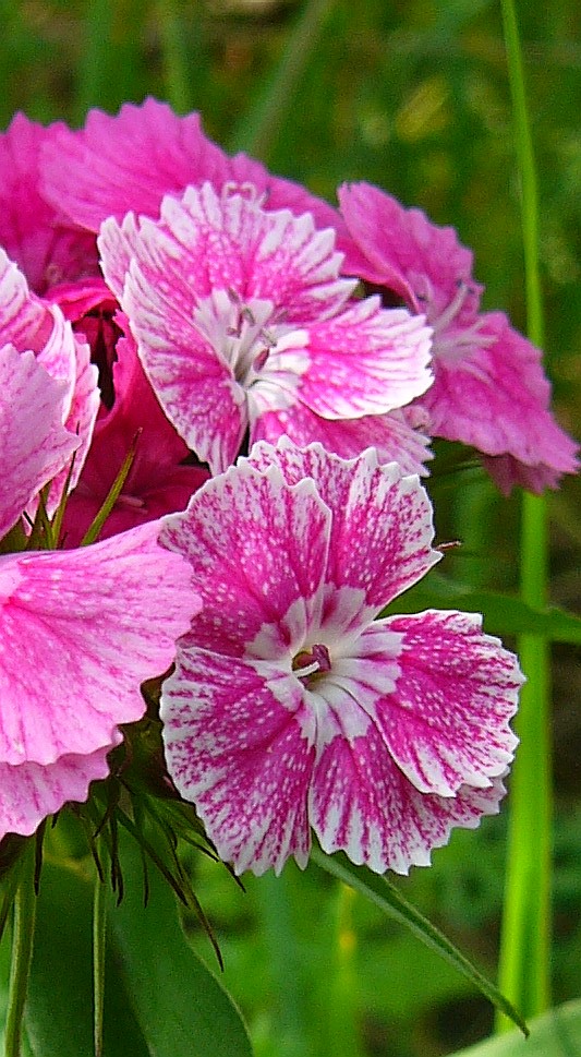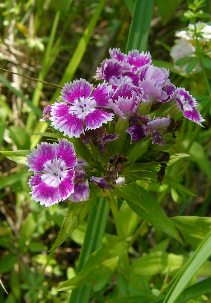 Dianthus - Blüten weiß, rosa oder rot, Kronblätter schartig, Blätter breit